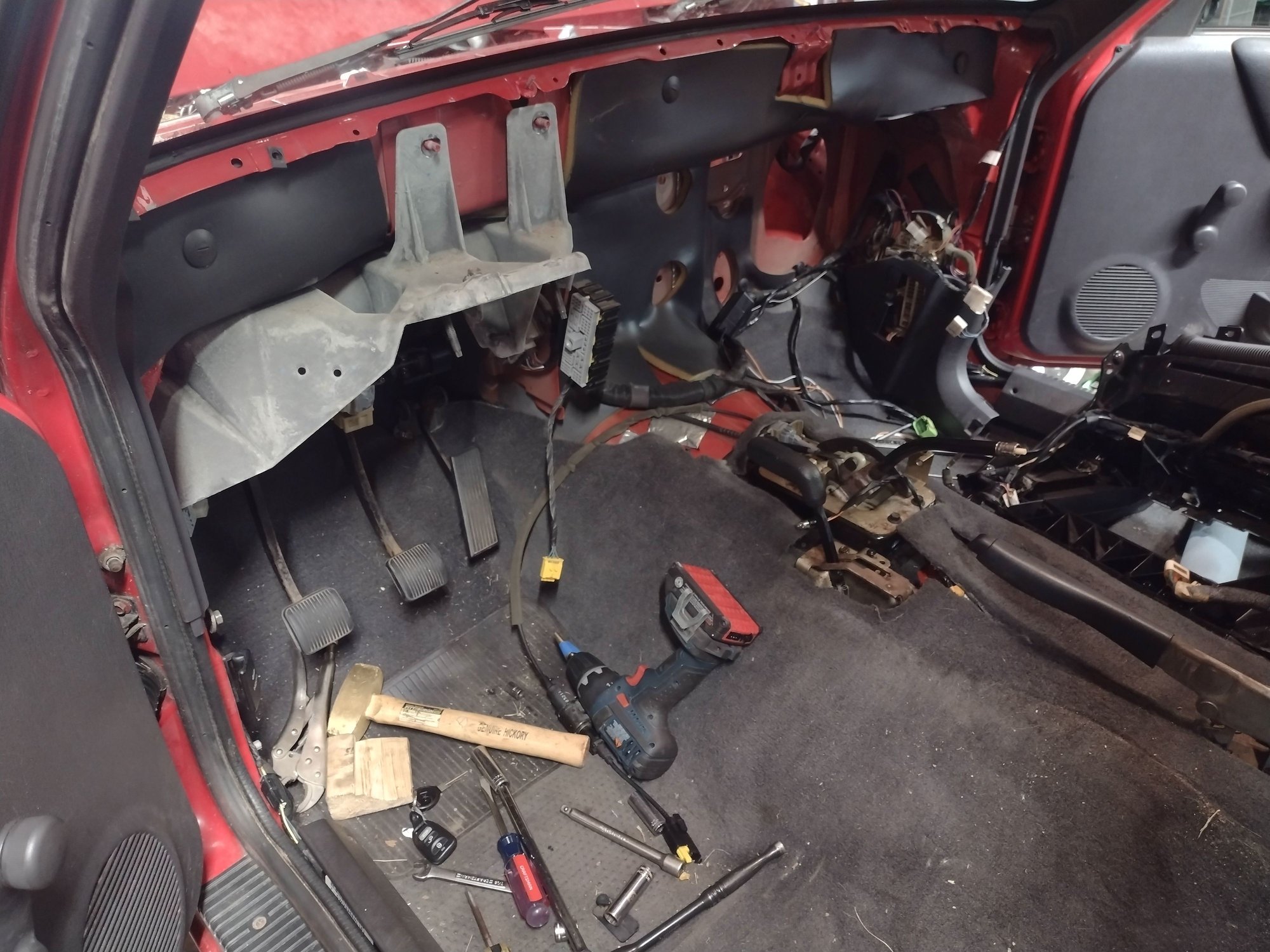 I'll keep driving it as an automatic for a few more months. In the meantime the clutch pedal will be tied out of the way for now while I keep working to prep the rest of the parts for the manual swap.