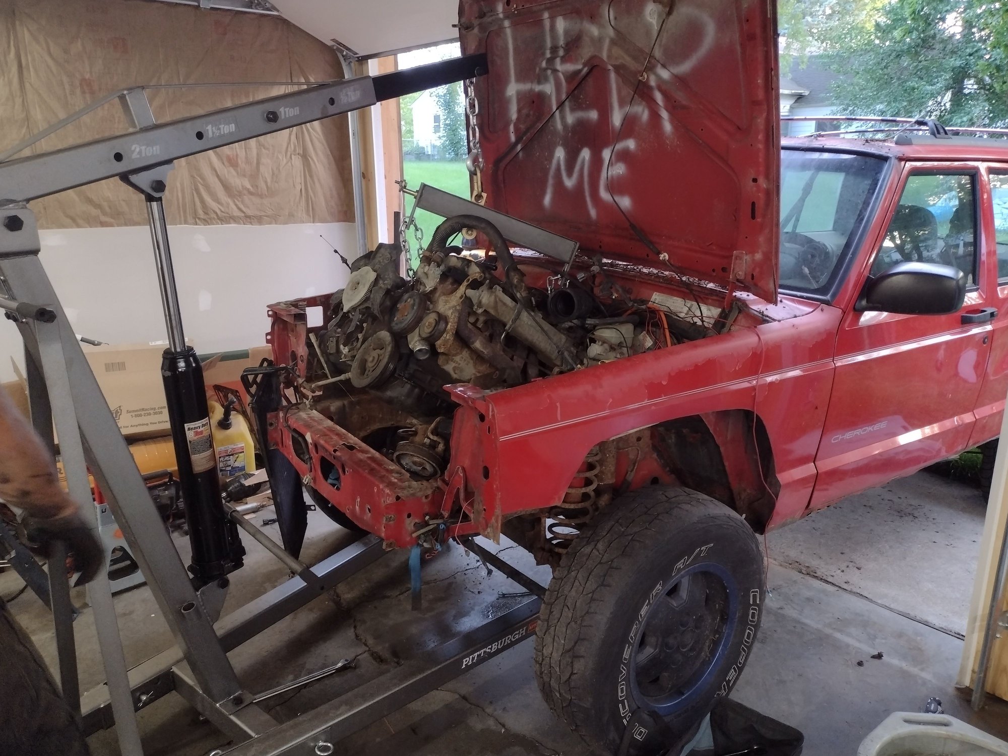 We pulled the engine and transmission out.