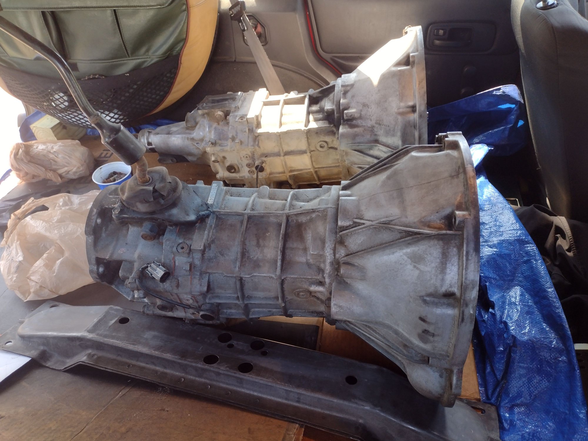 An NP242HD from a 2001 V8 WJ! These are pretty hard to come by. I'd seen one before, but I wasn't sure about the prospects of making it work in the XJ. Travis Mudrichs recent thread on his build up of one to put in his XJ came at just the right time for me to snag this. Another WJ donated its front sway bar. That's for a different project that's a lot bigger than just reducing body roll!/QUOTE]