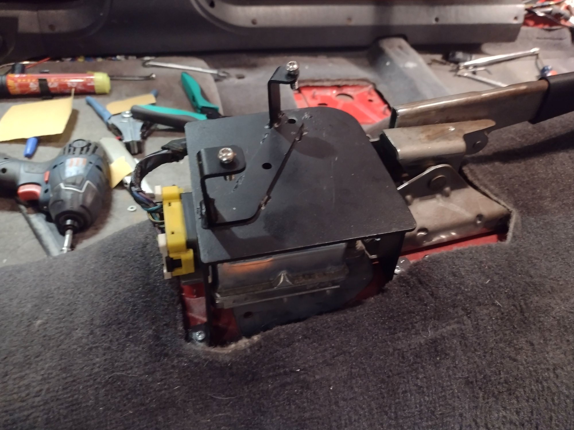 I moved over the airbag computer with those junkyard parts. I'm not really worried about water damage, but I do need the space for something I want to do with those FR-S seats.