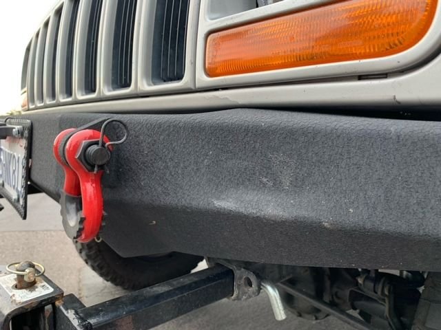 With the insurance money for the bumper repair we decided to just get the whole Jeep repainted since some rust spots were starting to appear on the roof and the hood was badly weathered. We were able to mostly straighten the bumper on our own and the powder coating was still fine so we took the money and put it all toward the paint. Went to Maaco and got a decent but affordable paint job done (ended up costing us $700 after using insurance money). Wasn't looking for show quality on a Jeep that we take off-road but didn't want to deal with rust either. Bought new fender flares and front fascia to be painted as well since the old ones were pretty beat up. Had the shop removed the black door protectors and paint the doors where they were. Had to replace the badging on the sides and rear so found some nice black 4x4 badges, black/Chrome Jeep badge for the rear, a Sport badge for the rear, and two "Trail-Rated" circular badges for the front fenders (I know they never had those but they look good). I did not replace the Cherokee on the door yet. I bought some stripe decals to apply to the doors that had Cherokee in them but I may not use them afterall, I also bought some black Cherokee badges from a 2014 Grand Cherokee that I may use instead (wanted black to go against silver paint). One thing I could not find was a black Jeep logo that would fit on the hood. The spot for the jeep emblem on the hood is curved and all the badges I found were flat and didn't stick or look good. Anyone know any place to get a black JEEP badge that is curved like the front of our Jeeps?