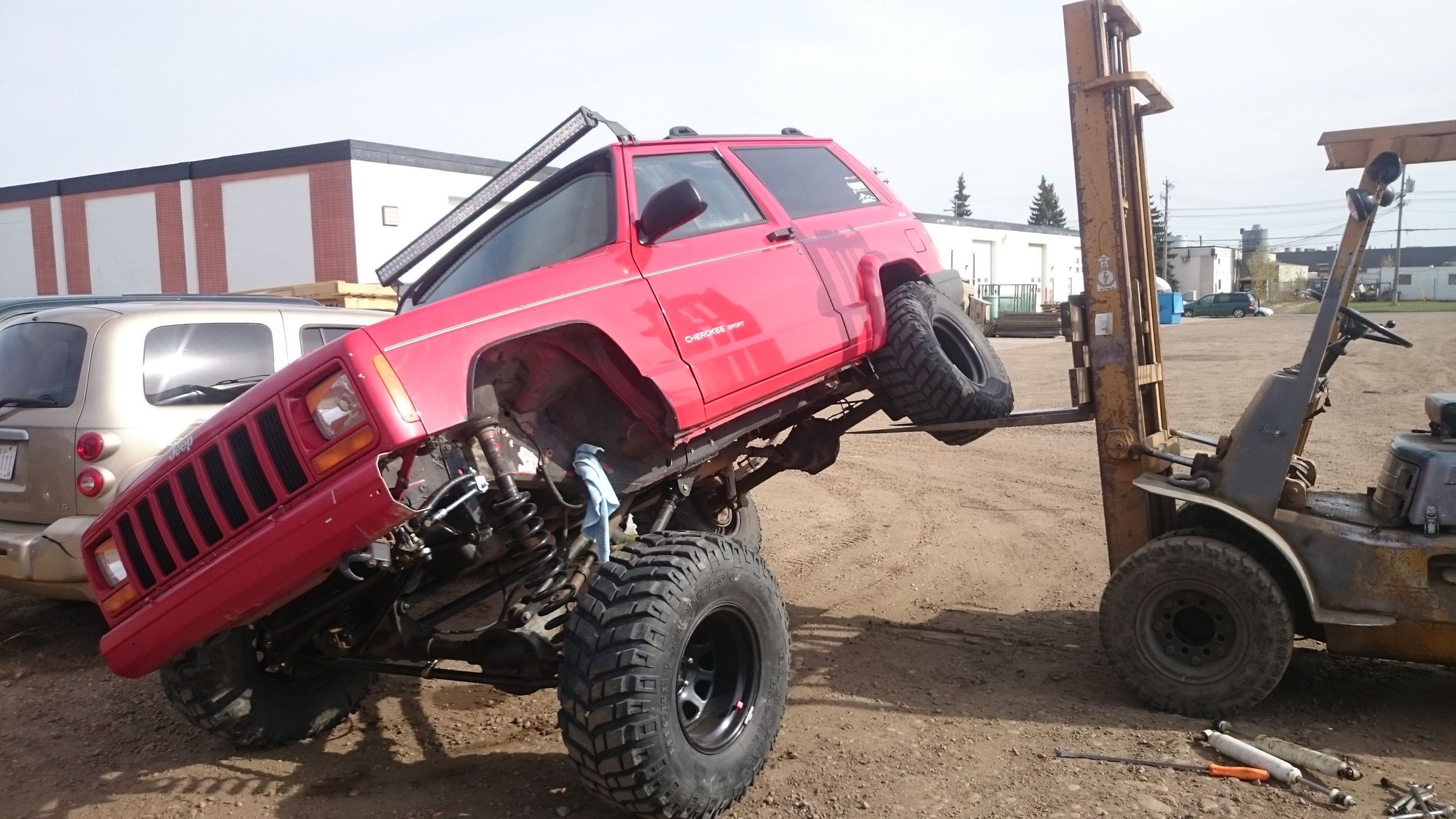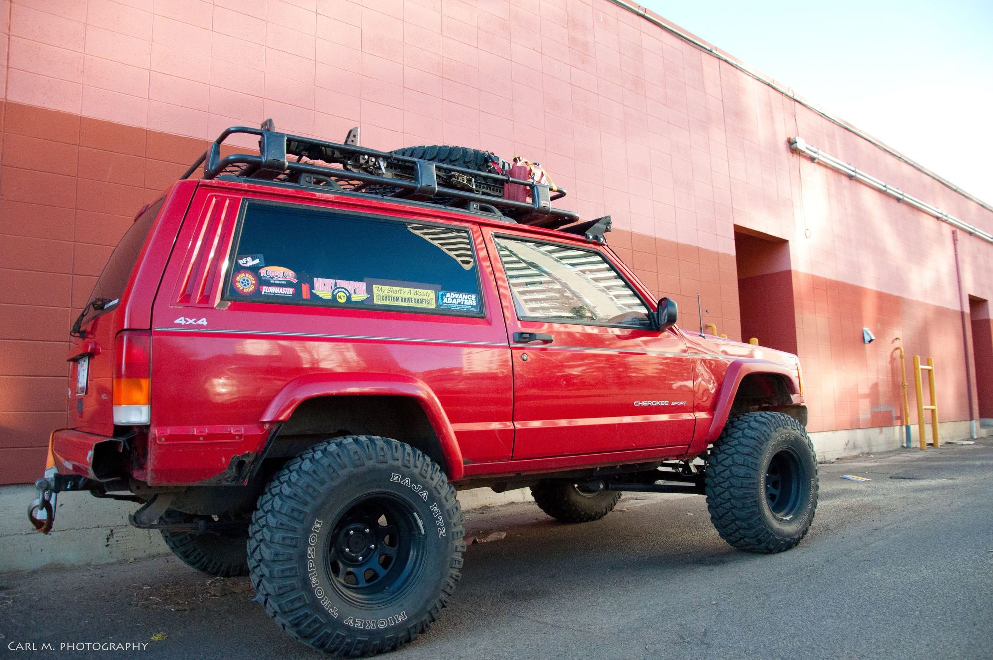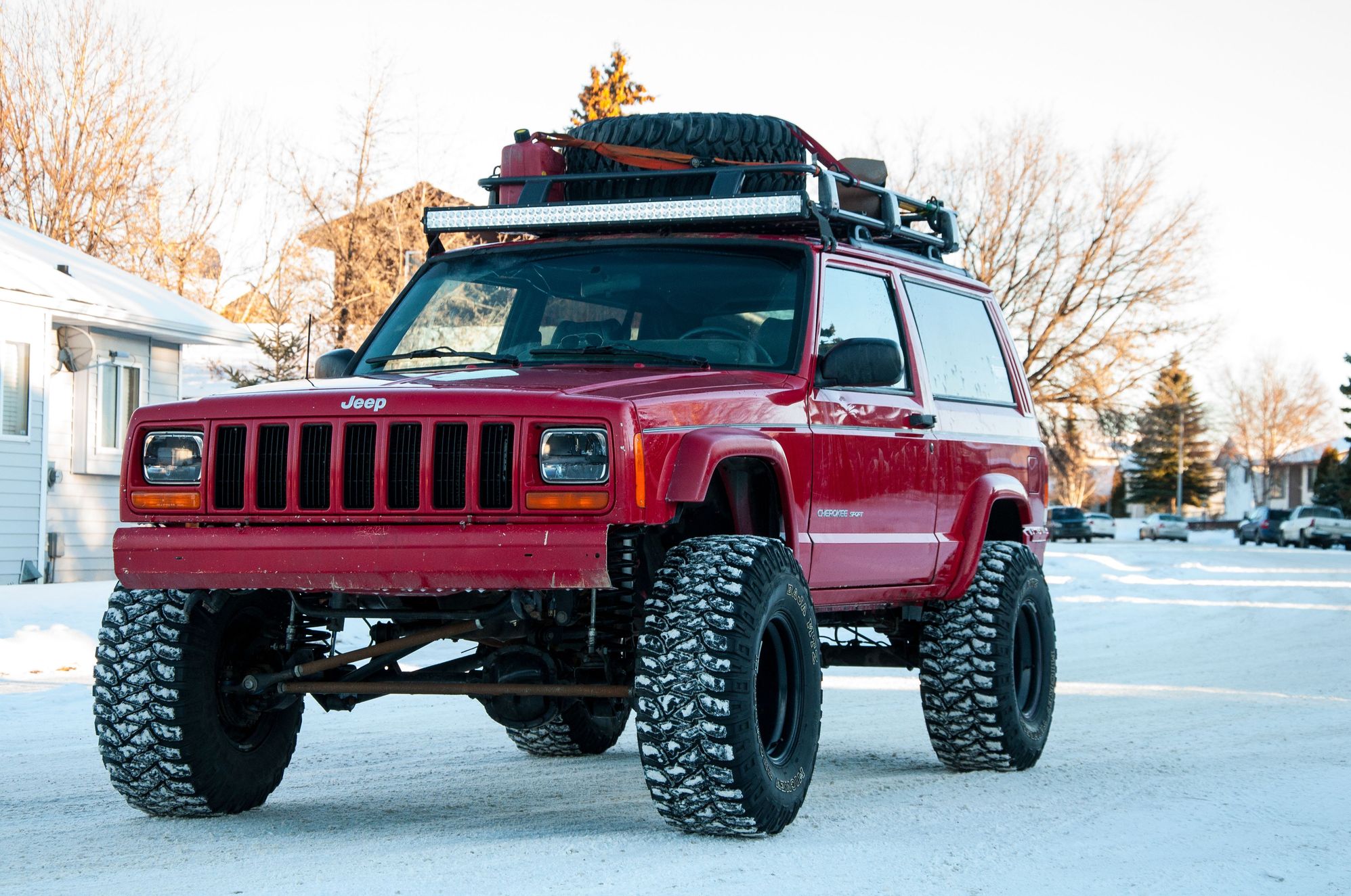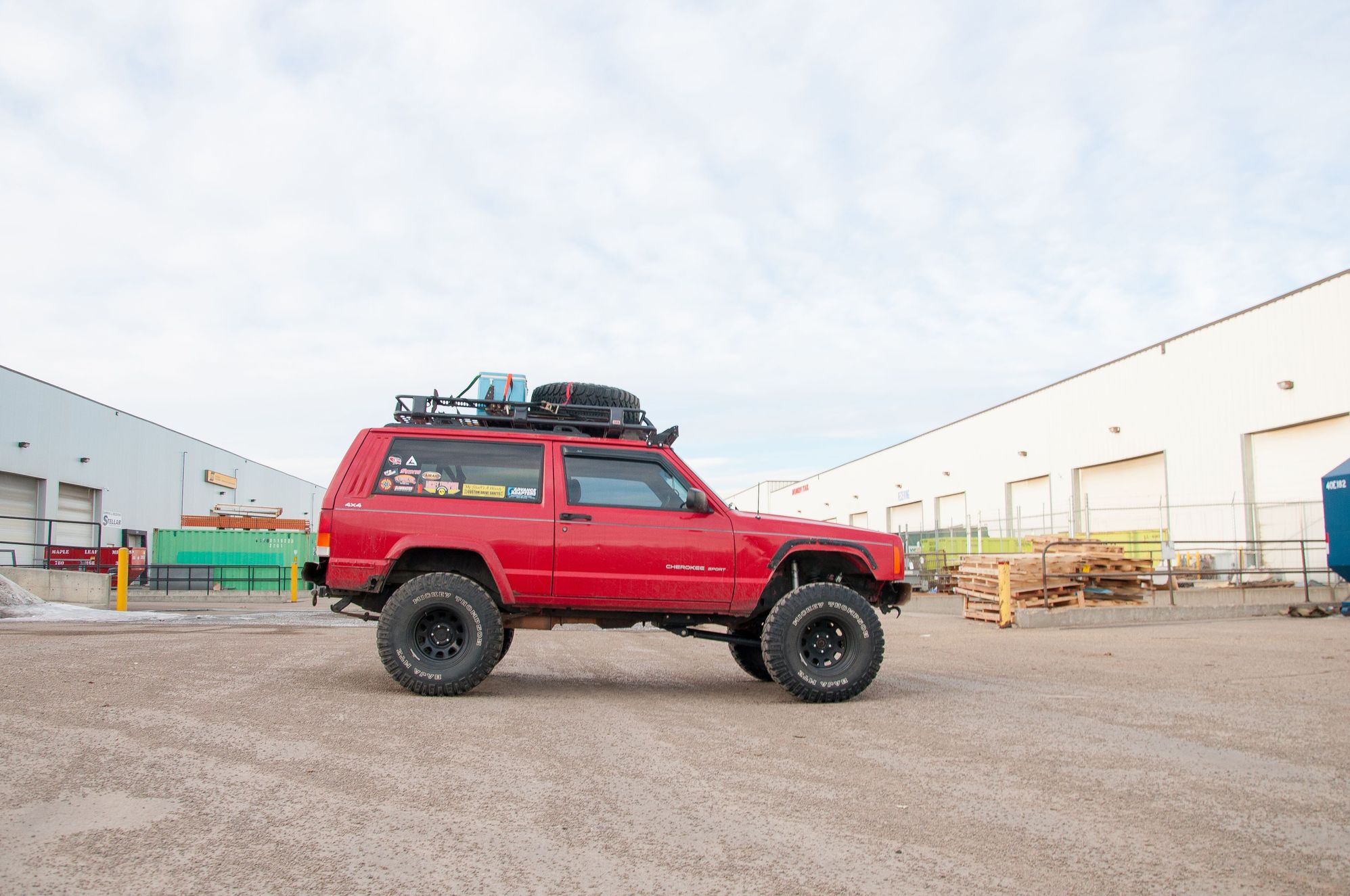WELCOME to the MEGA-Mod List for BigRed! Here you will find every modification done over the last 5 years of building. Enjoy. (*** @CLASSICCARL13 on Instagram for the Most Current Photos!!) https://www.instagram.com/classiccarl13/ Now Onto the Good Stuff... Basic Overview: - 1999 Jeep Cherokee Sport Upcountry edition, 2DR 5SPD - Fully Restored & Rust Free - Fully Loaded, All Power Options, Leather Swapped - 4.5" - 4 Linked Longarm Lift on 33s - 4.0L/AX15/NP231J/HPD30/FORD8.8 Mods: Exterior/lighting - JCR Vanguard Front bumper (w/ Uniframe Tie-ins & Steering Box Re-enforcement) - JCR Vangaurd Rear Bumper w/ Full Tire Carrier (w/ Unibody Tie-ins, Highlift Mount, Rotopax Mounts, and License Plate Relocation) - Custom 2x6 Rocker Sliders - Custom Lower Quarter Panels made w/ Integrated JCR Lower Quarter Panel Armour - Notch X-MAX Fender flares, Polyurethane Coated (Colour Match Flame Red) - ARB Aluminum Roof Rack w/ Custom Gutter Mounts - Trucklight Military-Grade LED Headlights - Stubby Antenna - Amber 2x2 LED Cubes (front), White 2x2 Cubes (rear) - AVS 2dr Vent Visors (rare) - 35% Front Tint MAJOR RESTORATION, All Rust Repaired!! - New Floorpans - Interior Bedlined/Carpet Re-installed - Custom 2x6 Rocker Sliders - Tubbed Rear Wheel Wells - Custom Lower Quarter Panels made w/ Integrated JCR Lower Quarter Panel Armour - Fully Polyurethane Coated Roof/Lower Body line down/rockers (Color Match Flame Red) Interior: - Grand Cherokee Front Leather Seat Swap (Converted to Flip-Forward for 2DR) - XJ Rear Leather Bench - Husky Floor Liners - Full LED Interior Lighting - Guage Cluster w/ Light Blue LED'S - Black Headliner - Shock-Top Belgian White Tap Handle Shifter - Aftermarket Sound Deadening (lots and lots..) - Alpine Type-S Speakers - Alpine Monoblock 1100Watt Amp - Kicker 12” Sub - Kenwood Colour-Shift Deck Suspension: Front: - BDS True 4Link Crossmember - BDS Upper/Lower adj. LongArms - BDS 4.5 Coils w/ Coil Isolaters - Bilstein Rubicon Shocks, 13in Travel, 30.8 Extended. - Relocated Brake Hardline - Custom 1-off Stainless Brakelines - IronRock Offroad Double Sheer Trackbar - Inner Coil Bumpstops (Hockey Pucks) - 28mm Swaybar Upgrade - BDS Swaybar Quick Disconnects Rear: - BDS 3.0 Leafs - BDS 1.5 Boomerang Shackles - Roughcountry Shackle Relocation Brackets - Extended Rear Brake Line - Custom Flush Mount Lower Shock Mounts - Custom Upper Shock Crossbar Steering: - JCR UTK 1ton Steering - Chevy 1ton Tie Rod Ends - Custom CNC Polyurethane Anti Tie Rod Roll Spacers Engine: - New(er) Engine, Currently @ 210,000k (400,000K on Body) - Rotella 5w40 Diesel Oil - 60mm CNC Bored Throttle Body - Flowmaster Super 40 Muffler on 2.5 Pipe - 1/O Battery Cables and Front Distribution Block Trans/Clutch: - LUK Performance Clutch Kit - LUK Flywheel - LUK Clutch Master & Slave - New(er) AX15 trans w/ 200,000k - Redline Racing MT90 Trans Oil T-case: - Advance Adapter Super-Short SYE - Advance Adapter Rear Tailhousing & 1310 Yoke - Novak Adapters S2K Cable Shifter - 35 Tooth Speedometer Correction Gear Driveshafts & Driveline: - Tom Woods Driveshafts Custom Rear CV Shaft - Rebuilt Front D/S from an AW4 Cherokee (1.4" Longer) Diffs: Front: - Custom Built Chromoly HPD30 27 Spline - (***WJ KNUCKLES IN PROGRESS***) - ARB Air Locker 27 Spline - RCV Performance Chromoly CV Axleshafts - 4.10 G2 Ring & Pinion - All timken Carrier/Pinion Bearings - SKF Axle Seals - Synergy MFG Rubicon JK Dana 44 Balljoints - SKF Wheel Hubs - Fully Sandblasted, w/ POR15 topcoat Rear: - xxx(BLOWN UP) Built Chrysler 8.25 (Locked, Disked, Geared)xxx - (CURRENT) Fully Re/Built 96' Ford 8.8 31 Spline (Explorer) - Slotted Rotors - All Timken Carrier/Pinion Bearings - SKF Axle Seals & Shaft Bearings - Detroit TruTrac Posi - Yukon 4.10 Ring & Pinion - 1310 Conversion Flange Adapter - Crush Sleeve Eliminator - Ruffstuff AntiWrap Spring Perches - Custom Flush Lower Shock Mounts - Lubrication Engineers SAE140 Straight Weight Oil Tires/wheels: - (X5) Procomp series 52 D-Window Steelies 15in x 10wide, 3.75BS (-38 offset) - Micky Thompson Baja MTZ P2s, 33x12.5r15 (Summer) - Goodyear Wrangler Duratracs, 33x12.5r15 (Winter) - Chrome Spline Lugs Misc Accessories - DUAL On-Board Air Compressors - ViAir Pressure Switch - x2 1-Gallon Tanks - 900CCA Diehard battery - Vacuum Reservouir Relocated - ARB Kinetic Tow Strap - Highlift Jack - Rotopax Fuel Containers |