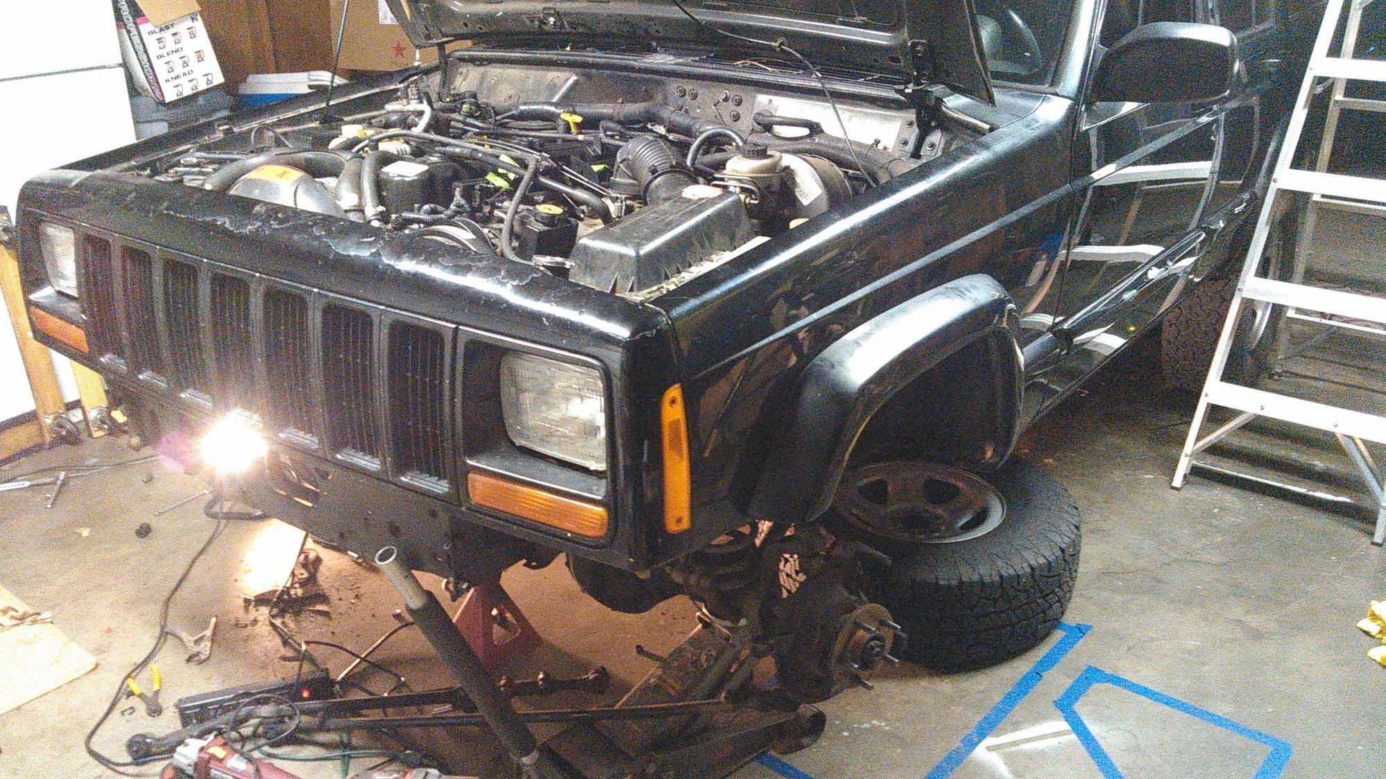 Spent the weekend tearing apart the XJ so we can get the new parts installed. Removed all steering components, brakes, transfer case crossmember, frame side control arm brackets, and removed the frame undercoating.