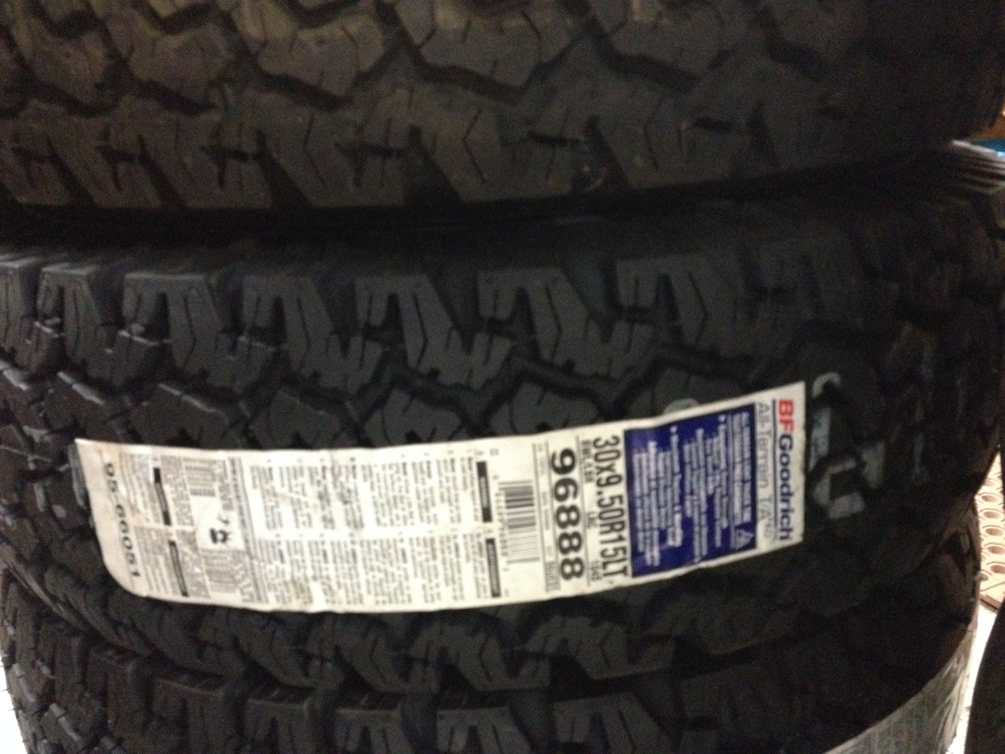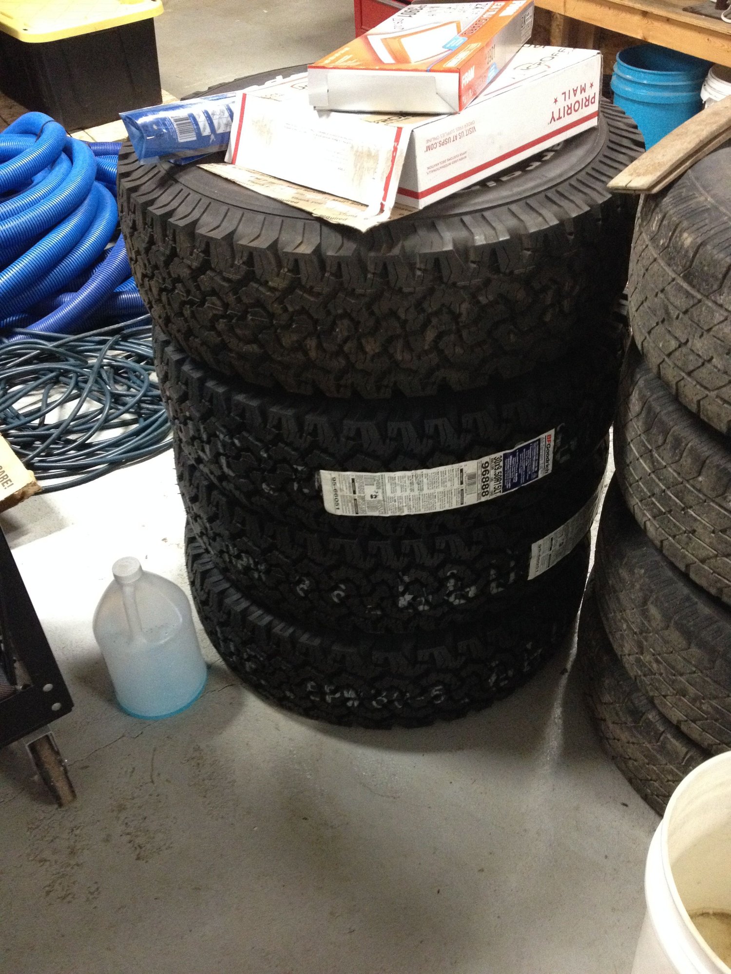 NEW TIRES. STILL NEED TO GET THEM MOUNTED AND BALANCED. I ALSO THOUGHT AT THE SAME TIME I WOULD DO THE ZJ TIE ROD UPGRADE. THAT'S THE PLAN FOR THIS WEEKEND.