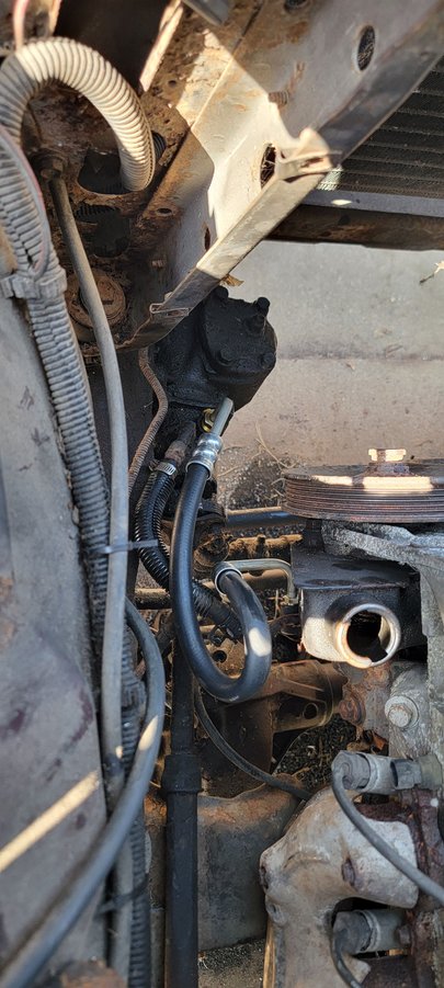 power steering lines - check! Factory 83 pressured line has this goofy arch but the fittings are tight and the lines arent rubbing anything