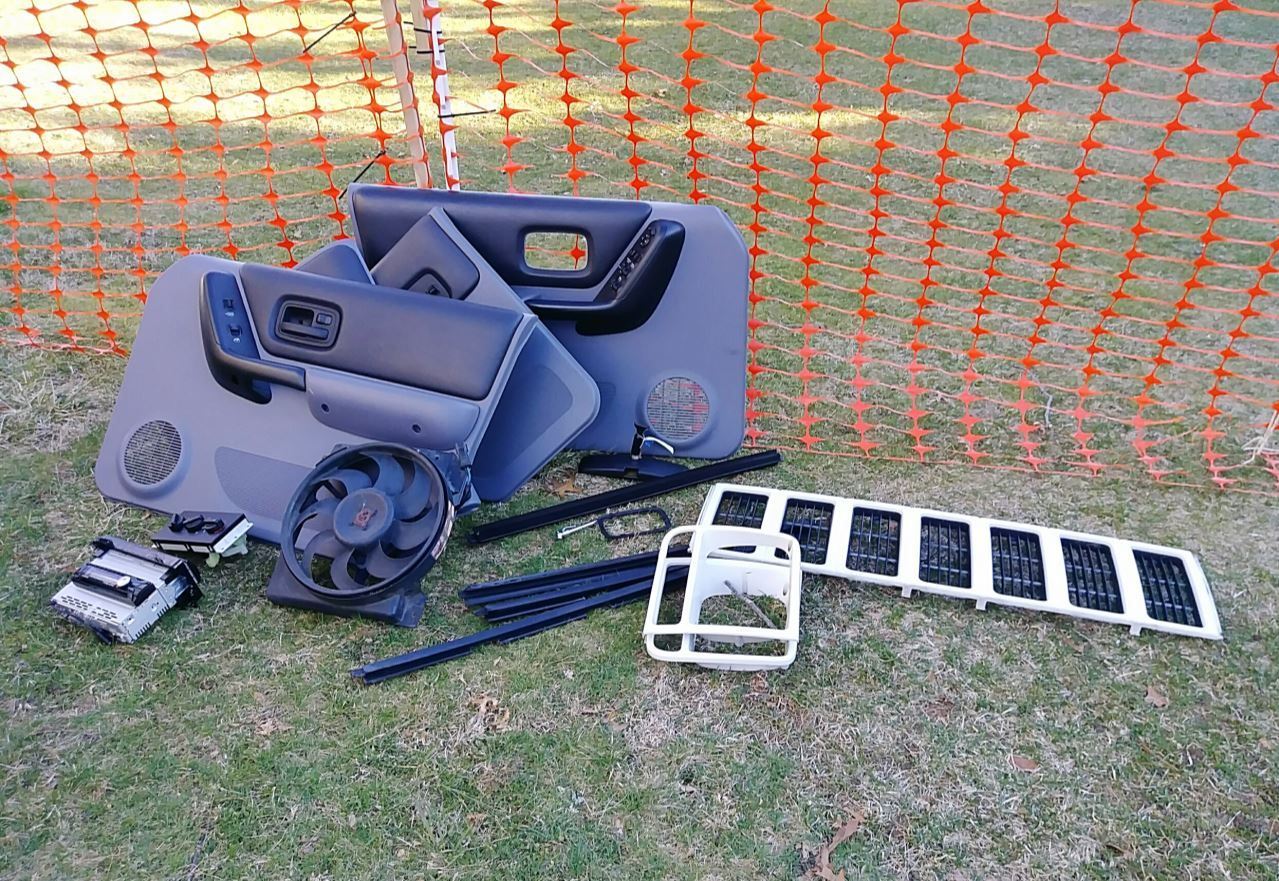 Plucked some parts from the stock jeep. Grabbed an extra fan, door panels (mine are showing their age and are in rough shape), a brand new radio/hookup that was left untouched, a rear view mirror, hood latch release and a other few goodies here and there. I'm happy.