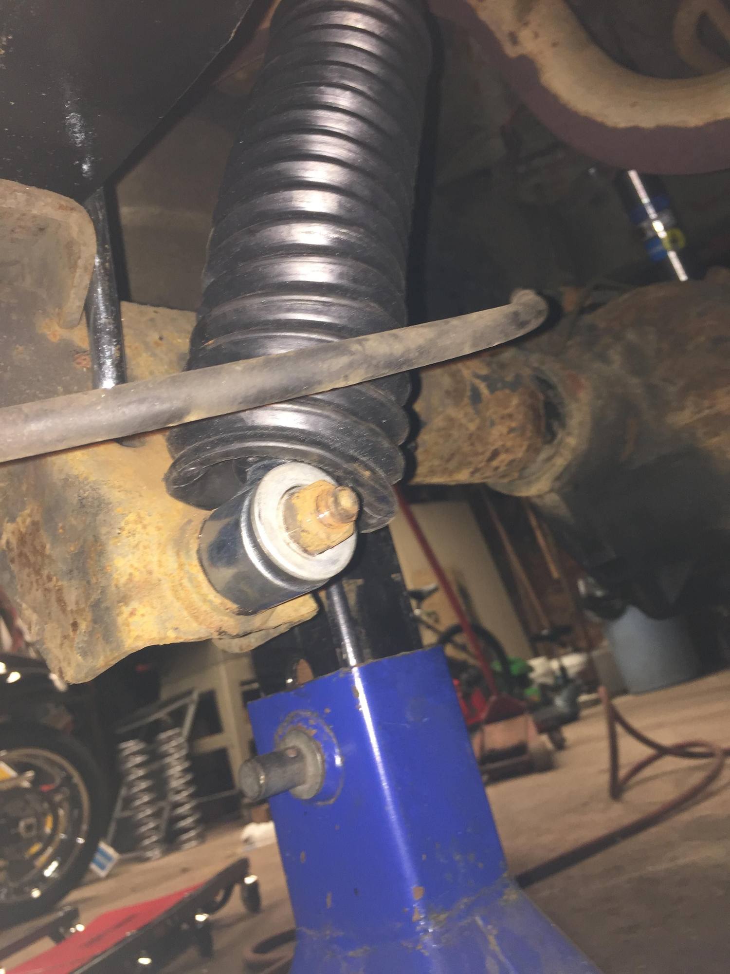 Tightened down the new U-Bolts, cut them and started to install the rear shocks - and like every XJ, the shocks that were already installed were all kinds of messed up and the bolts were once again seized. Also, one of the front shocks were wrong... they were not for my jeep, and the mounting points were not correct. Had to bring that back to our parts' dealer's shop so he could get us a new one. No big deal, and so we continued. We drilled through the floor above the shocks with a 5/8" uni bit, opened up the hole for a socket, put new bolts down through the floor into the shock bracket with washers and popped in my new shocks. The old shocks were missing washers (we don't know how they were holding in, they were ready to fall out).