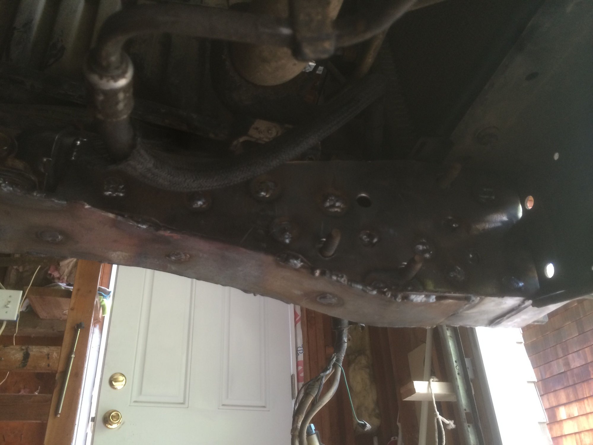 I also made my own stubby front bumper as well as remade the front crossmember. I finished my front/bottom plates to the end of the frame rails. The new crossmember outlines the old one and is made of 1/4" plate steel.
