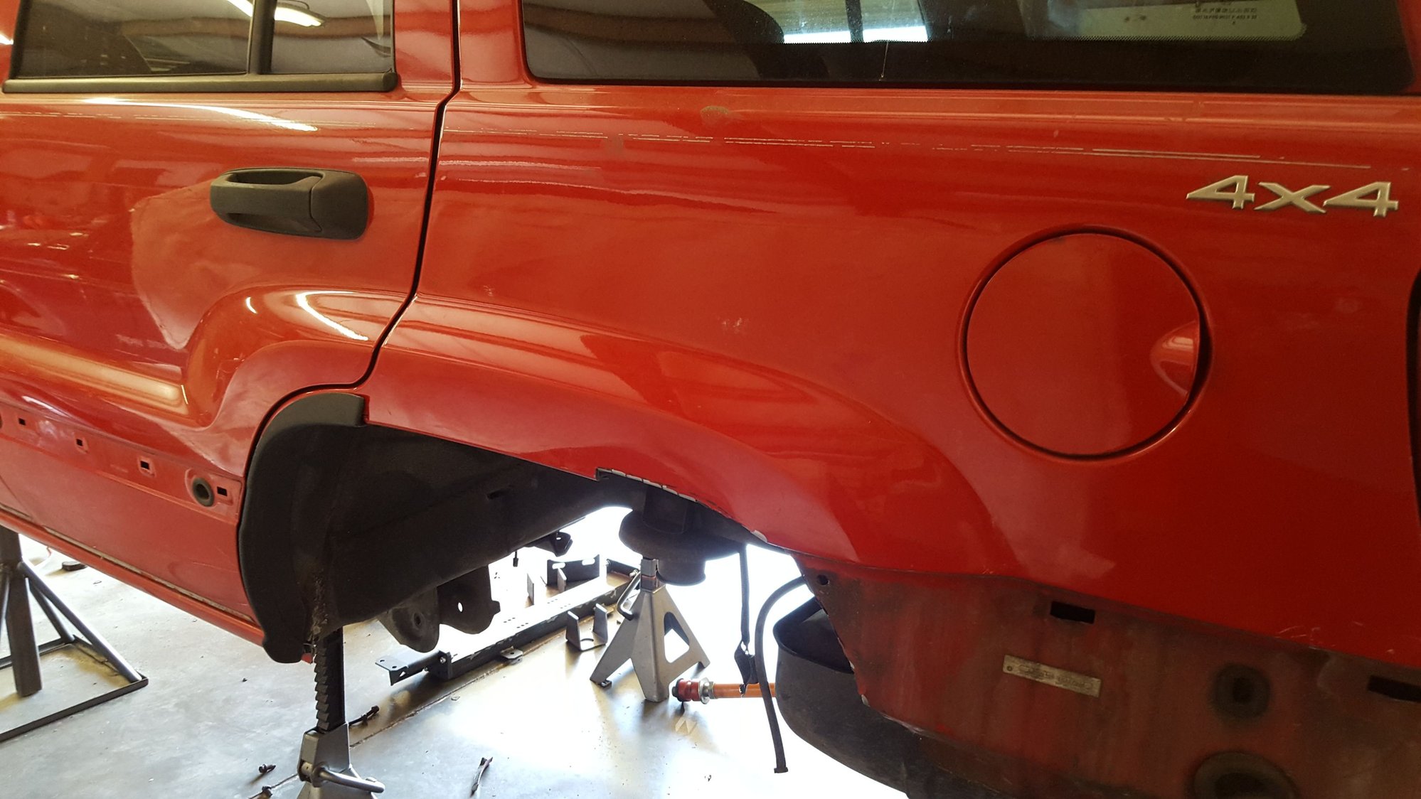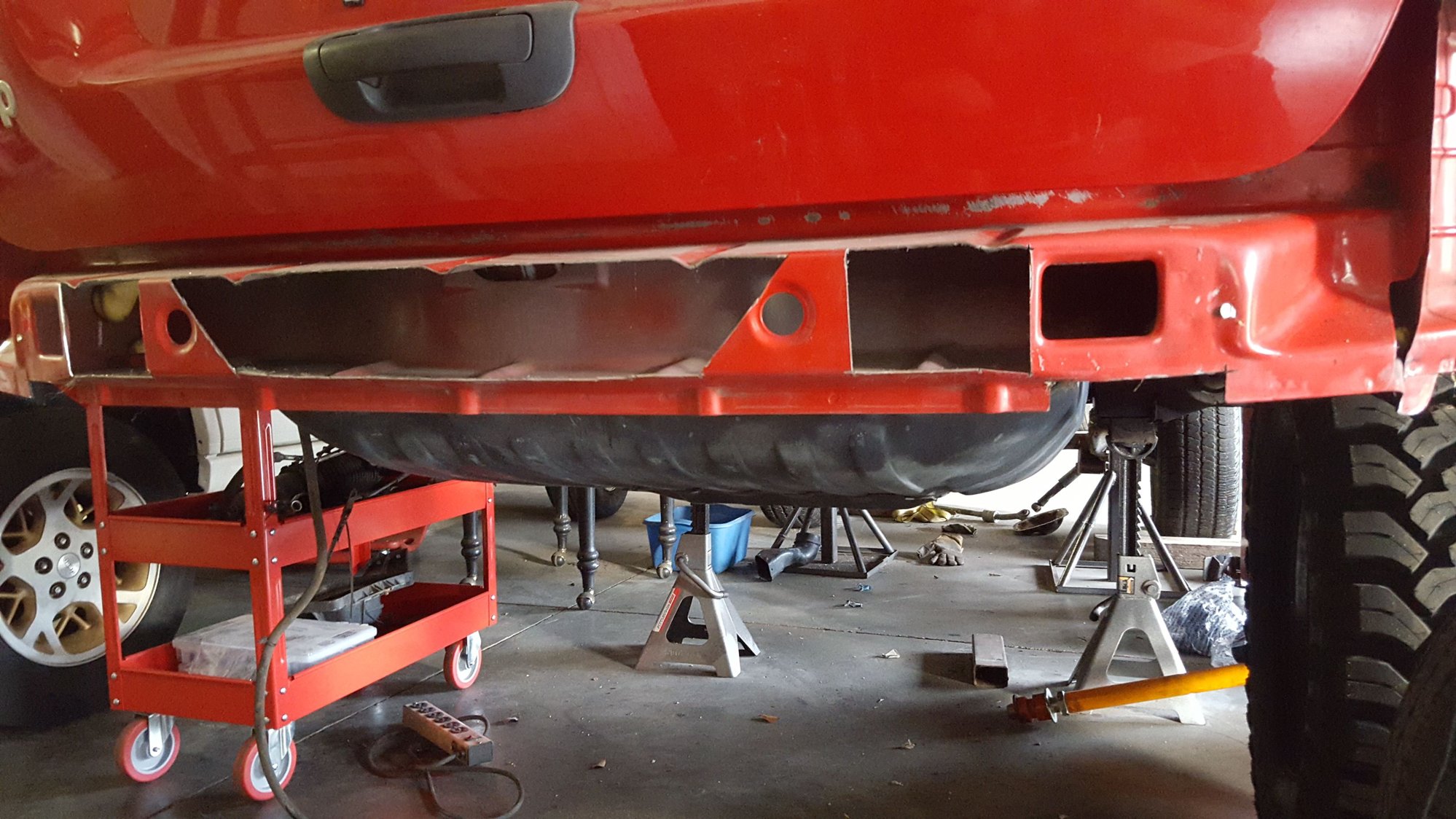 Spare tire area delete and shortening the gas tank skid plate. Now gas tank is sitting 6" higher than it was before. Nice upgrade to gain some ground clearence. Will post some more pictures when I get everything welded together and painted.
