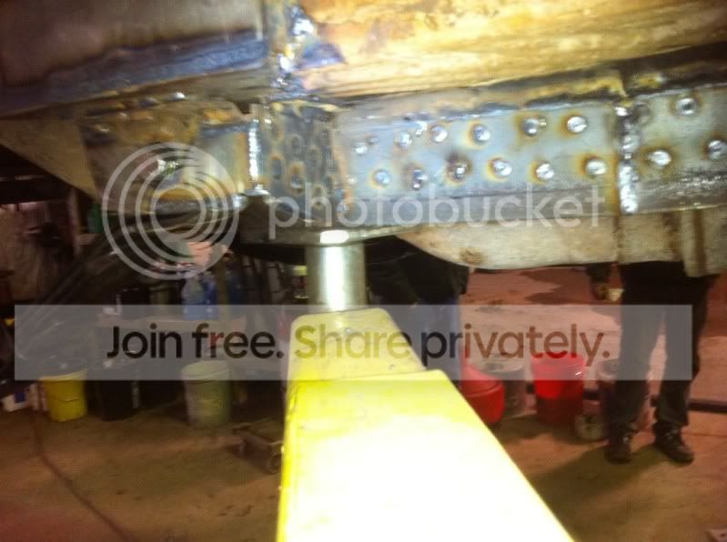 I plan on plating te frame right by the mount (then the whole thing eventually) and gusseting the hanger to the frame. Then I started cutting the rocker, and I'm going to run 2x6 box steel for rockers, and am going to plate across the top of the frame, across the top of the frame and up to the 2x6. I didn't get too far before the last cut off wheel disintegrated, hopefully it rains all day tomorrow so I can get a lot done.