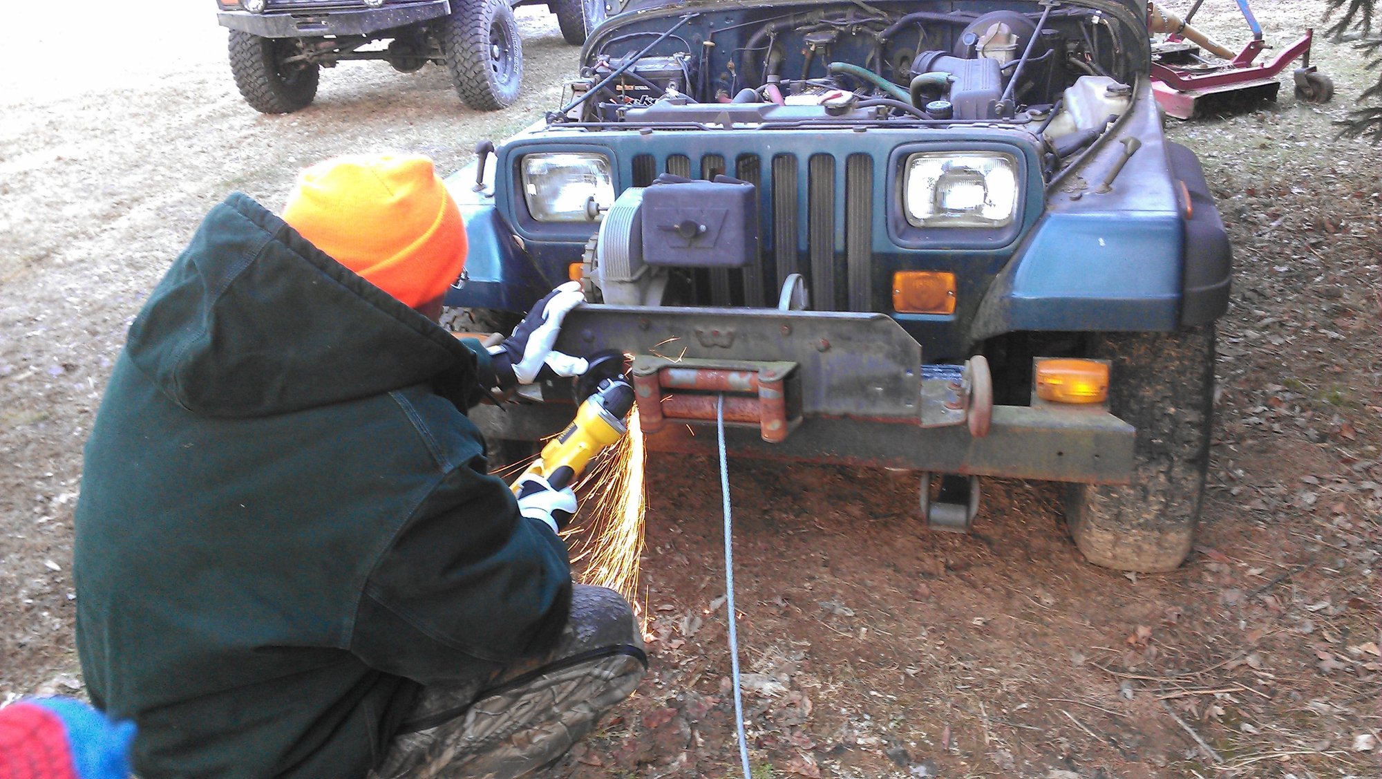 Next up was to get the winch in place. First we removed it from my Dad's YJ that been parked for a few years.