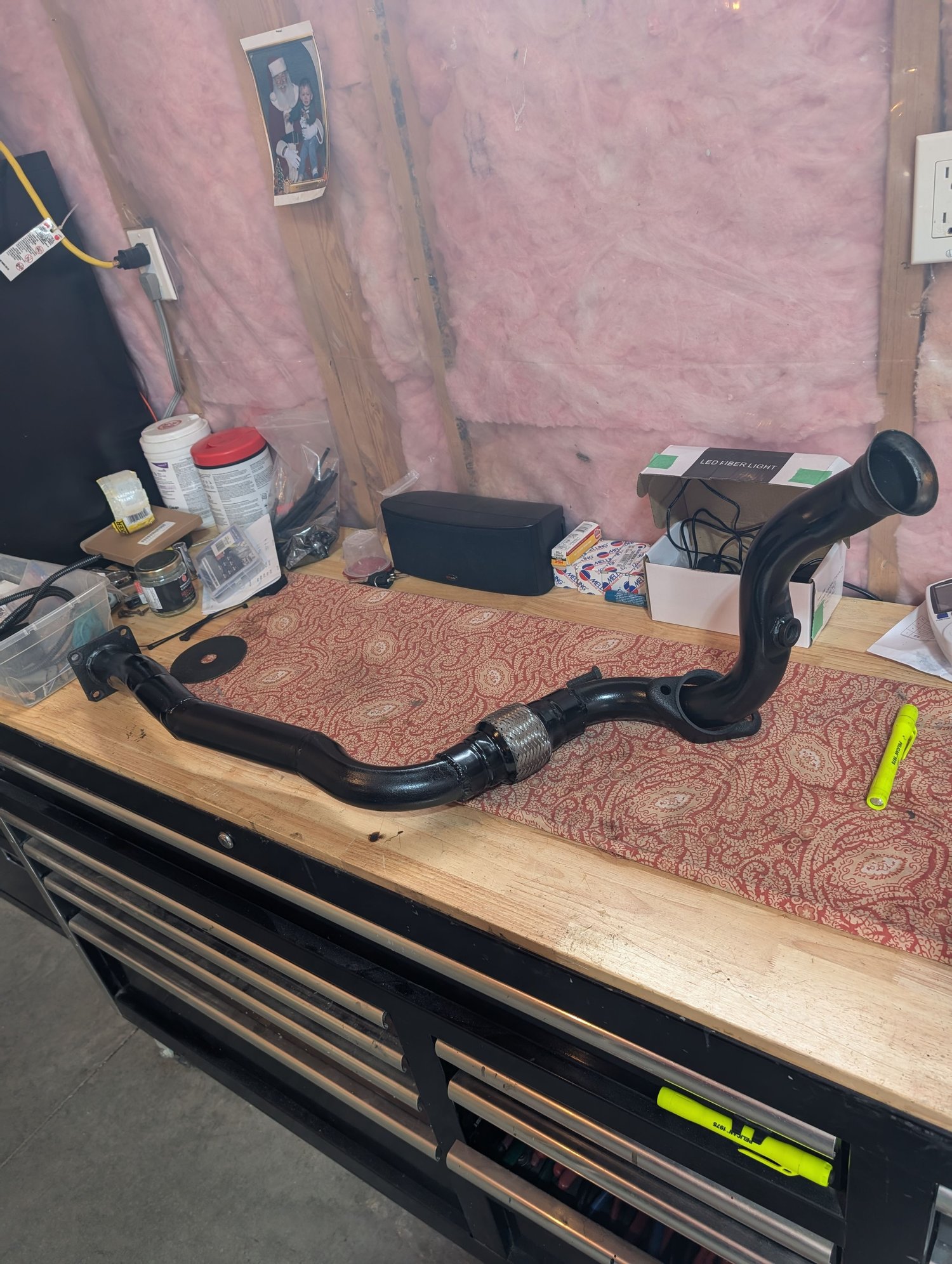 Also cut the front pipe and put a small piece of flex in there to try to stop the header from cracking.