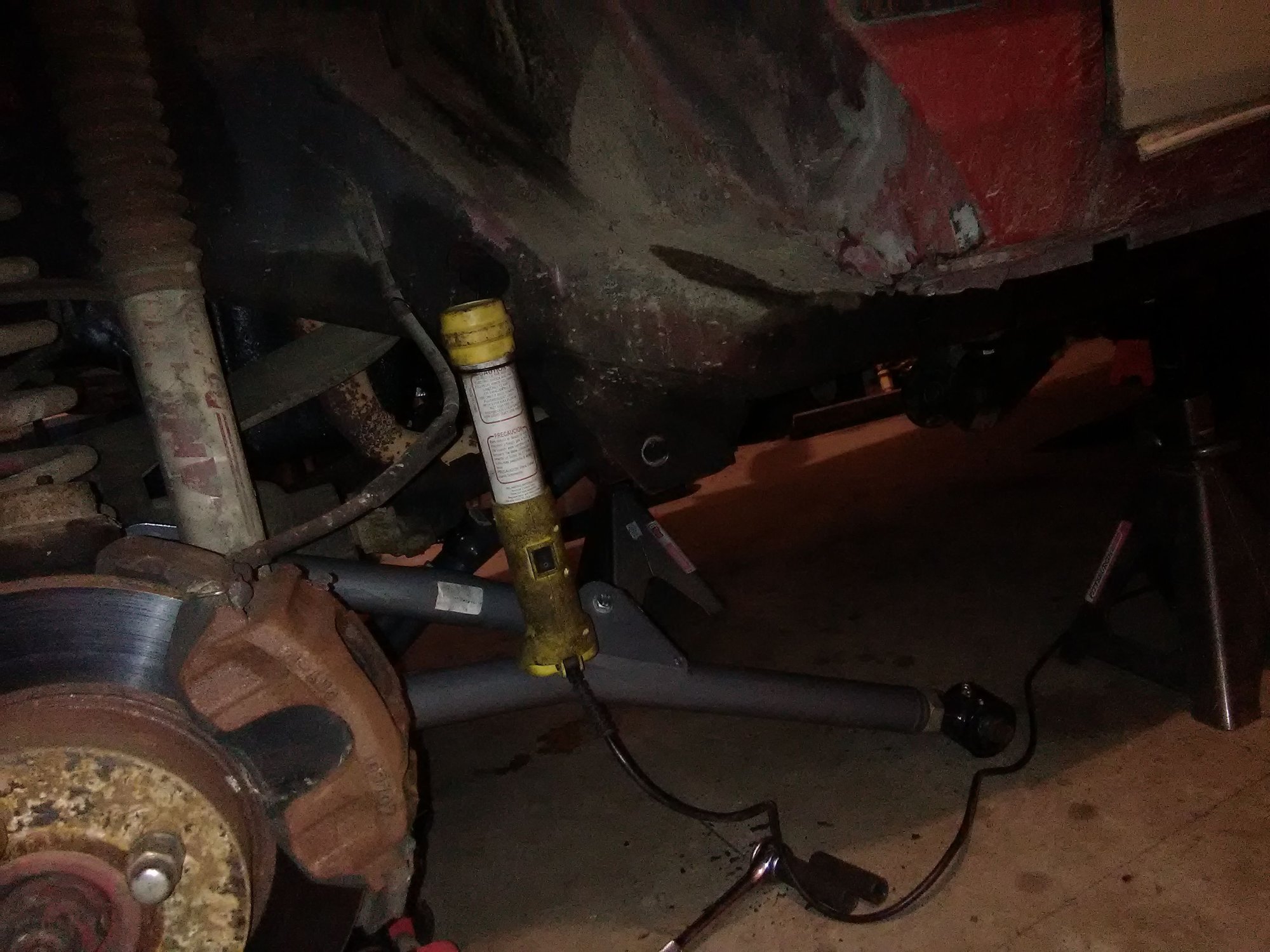 Next came control arm removal which isn't hard just time consuming. I got drivers side down lower part and part of long arm bolted up but not tighten. I still need to remove driver side upper control arm but before doing so I need to cut lower control arm brackets off the uniframe. That's where I stopped last night around 1am. Wish me luck later today .