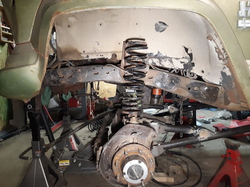 I will say the original plan w/ this truck was to get it home and let sit for a little while till later this summer and start getting into it But Damn its hard to resist tearing into the front suspension when you have your build axle on the floor.