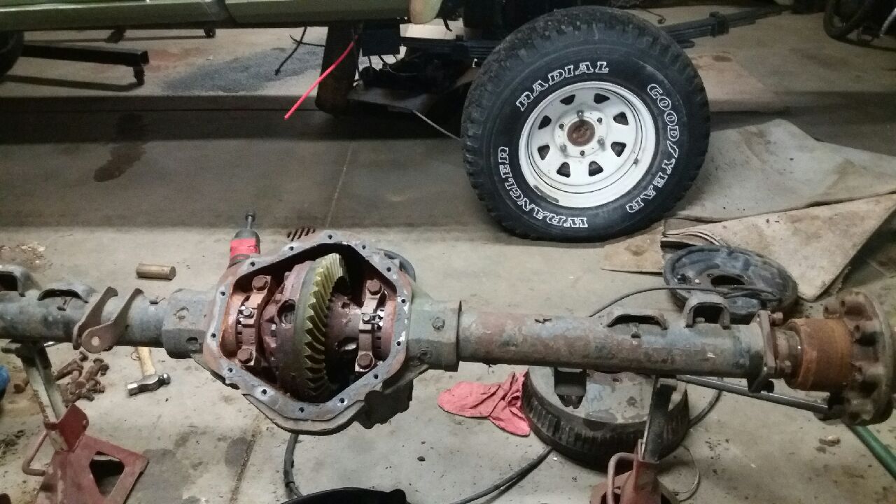 Soo thanks to another good source i now have my 14 bolt rear axle. This axle was fully rebuilt with brand new everything many years back (4.10 gears, bearings, seals and from the looks of it a lsd as well. Though the elements have had some fun with the axle (scale rust inside the axle) it still spins over smooth. Can't really complain for the whopping price of only $50.