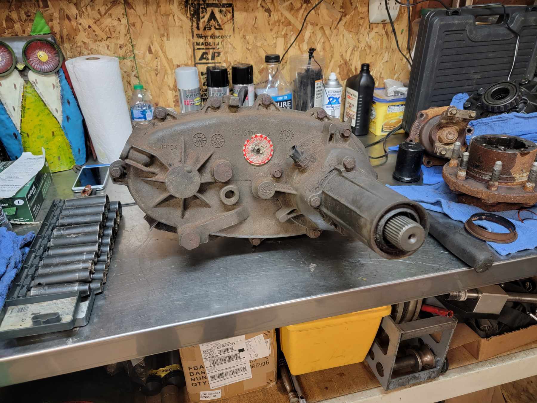 Tcase got pulled back out tonight, i gotta say though - from the flat of a floor creeper trying to wiggle this unit off the back of the trans 2 feet off your chest - its a chunky sob! Then you get it down after nearly crashing the thing into your face and dump it to the floor next to you only to get up on your feet and haul it over to the bench - its actually a "light" tcase afterall.