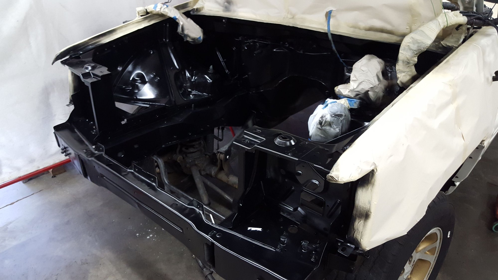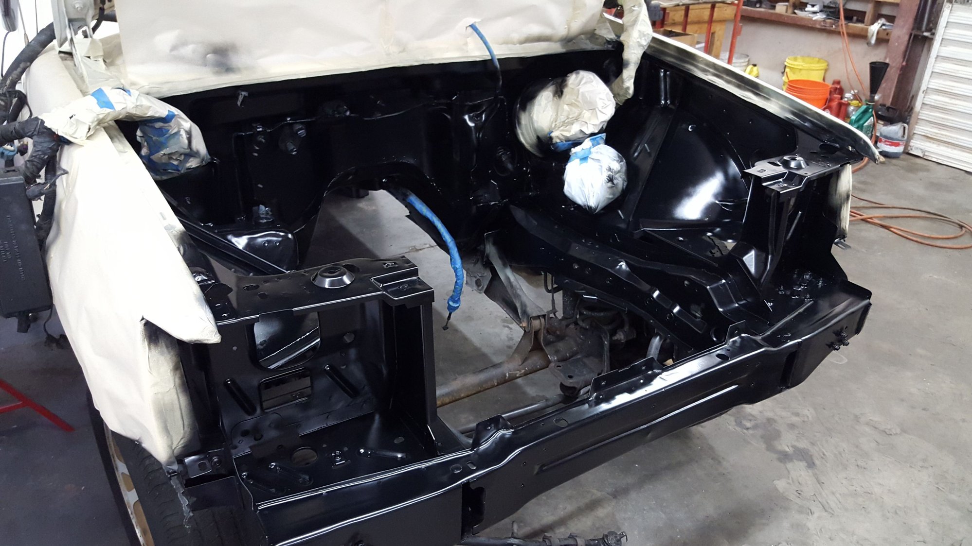I decided to go with satin black engine bay & chassis paint. Applied 3 coats ( 2 light coats, 1 medium wet coat ). Turned out very nice. Now it needs to dry for about 3 days to fully cure.