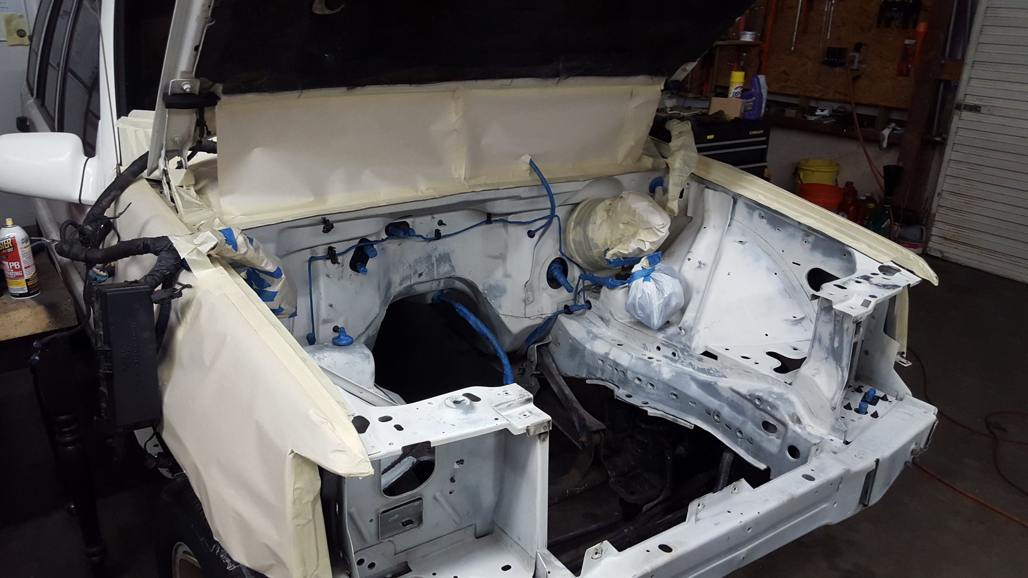 I used some adhesion promotor on the hard spots an then some self-etching primer ( 2-3 coats ) on the whole engine bay. It turned out pretty good, better than I thought actually. I'm pretty happy with it. Now time for the actual paint.