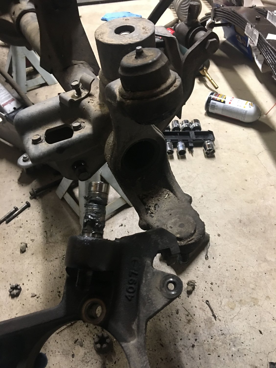 Now comes the cleaning of the axle to prep for the truss, c-gussets, LCA brackets, UCA bushing on the housing side and new ball joints.