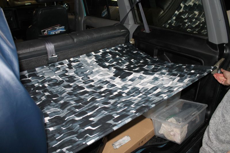We had been looking at buying a cargo cover since we got Malcom. We even went as far as looking at one on Craigslist... which, despite us clarifying with the seller we were looking for one for an XJ it turned out to be a Grand Cherokee one. However the OEM ones are expensive and don't fit with a full sized spare as far as I can tell.