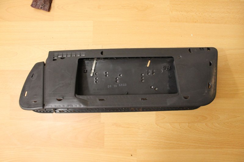 I upholstered the visors and overhead console the same way. I only have disassembly photos of the overhead console but it looks quite good as well. The visors are difficult with the foam backed material (it's thick) but they turned out quite well. I found the hardest part was upholstering the back of the mirror. I plan on putting LED lights in the visor lights.