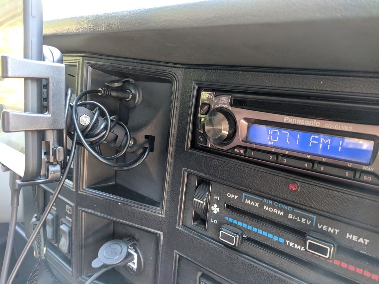 Got the new one in the mail a few weeks ago. I had to revise the design to make it fit, but this time I got it right. I also modified the design to have a hole in the panel for the aux in audio cable.