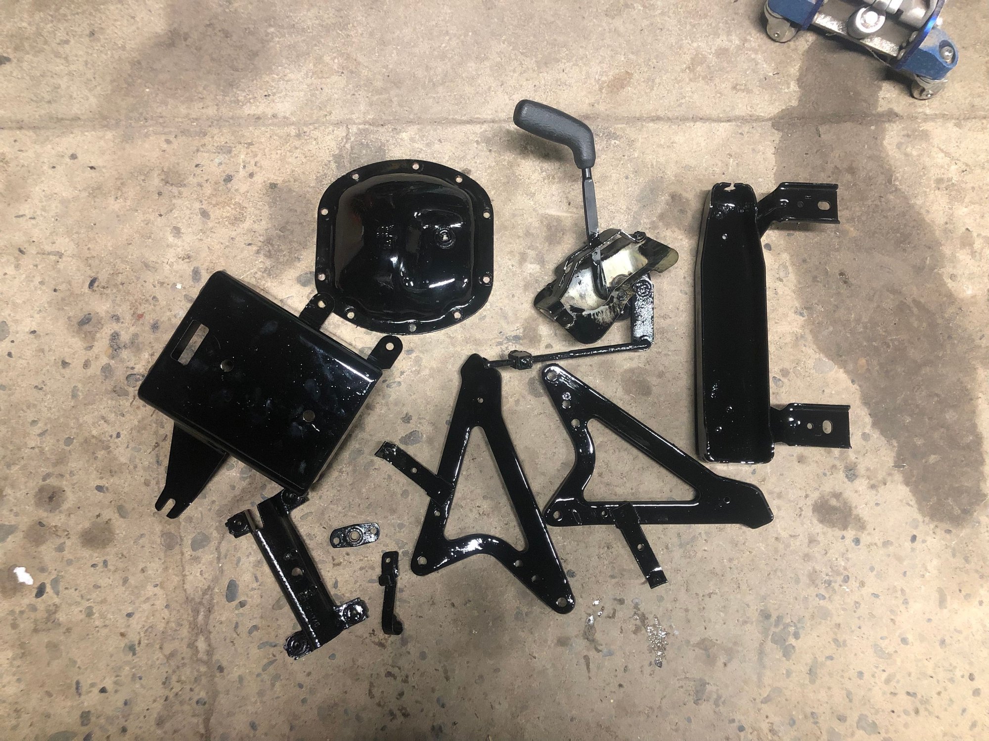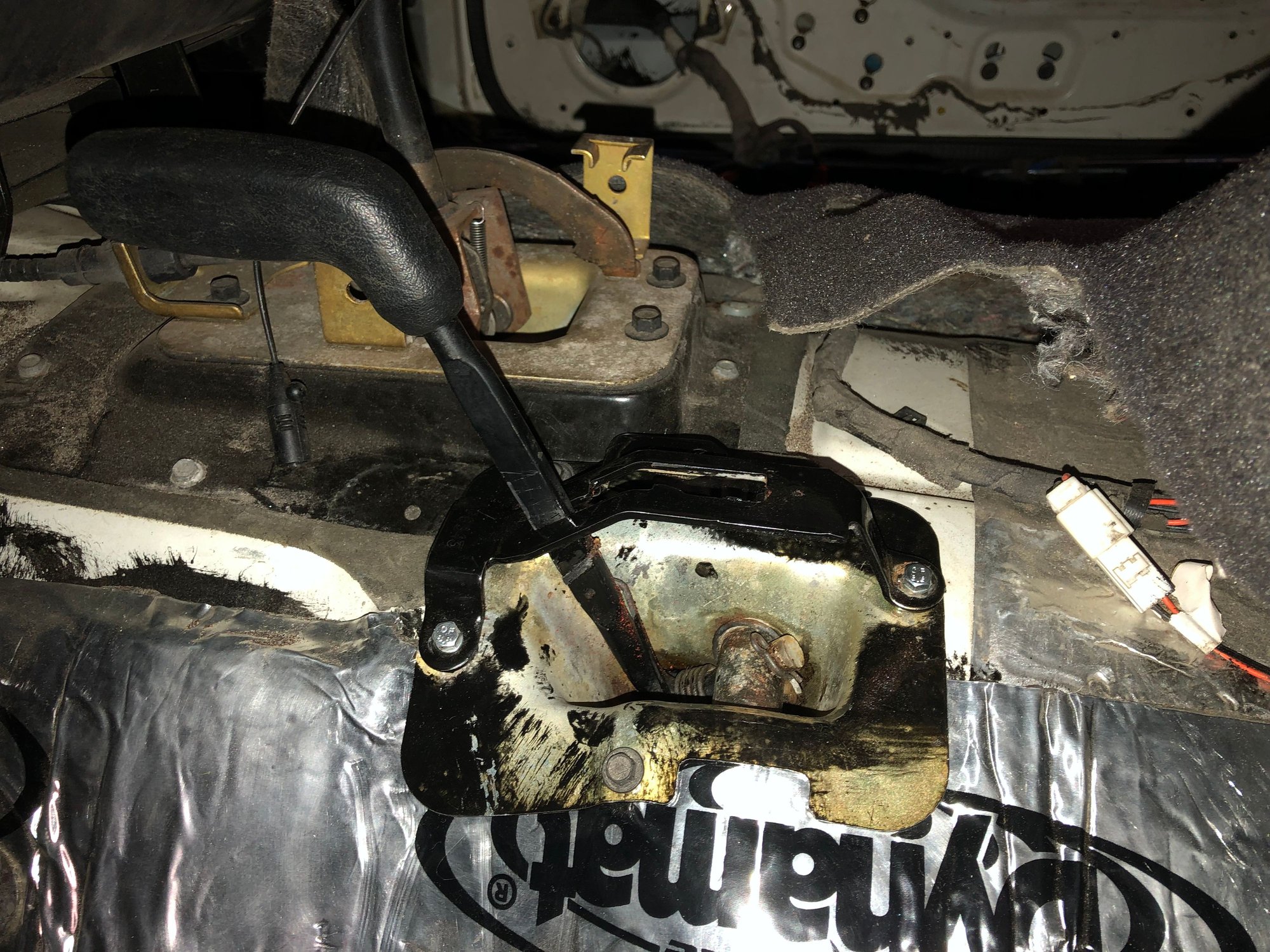 The first 4x4 part to be bolted onto the body. I pulled this transfer case shifter assembly from the junkyard a few months back.