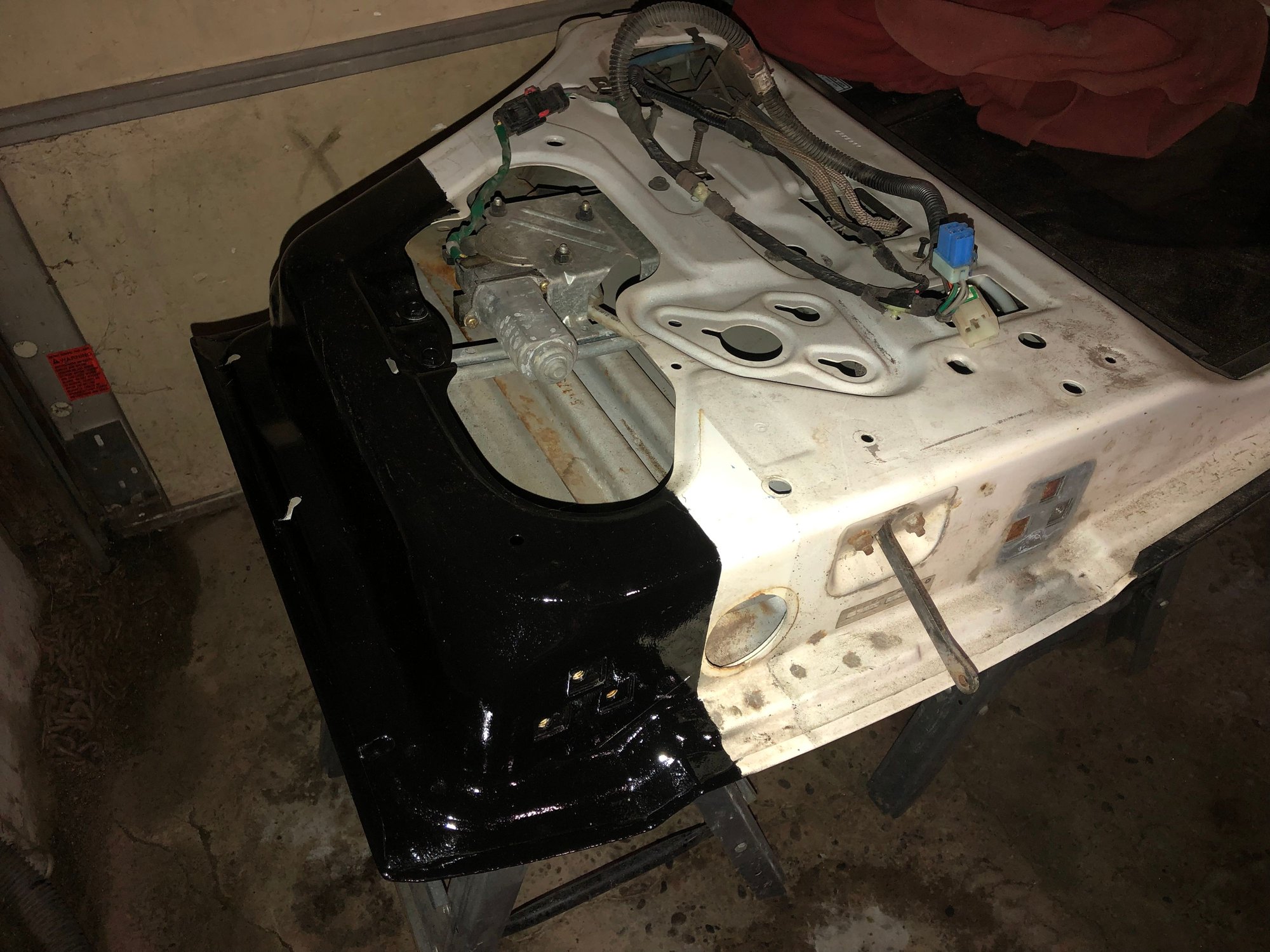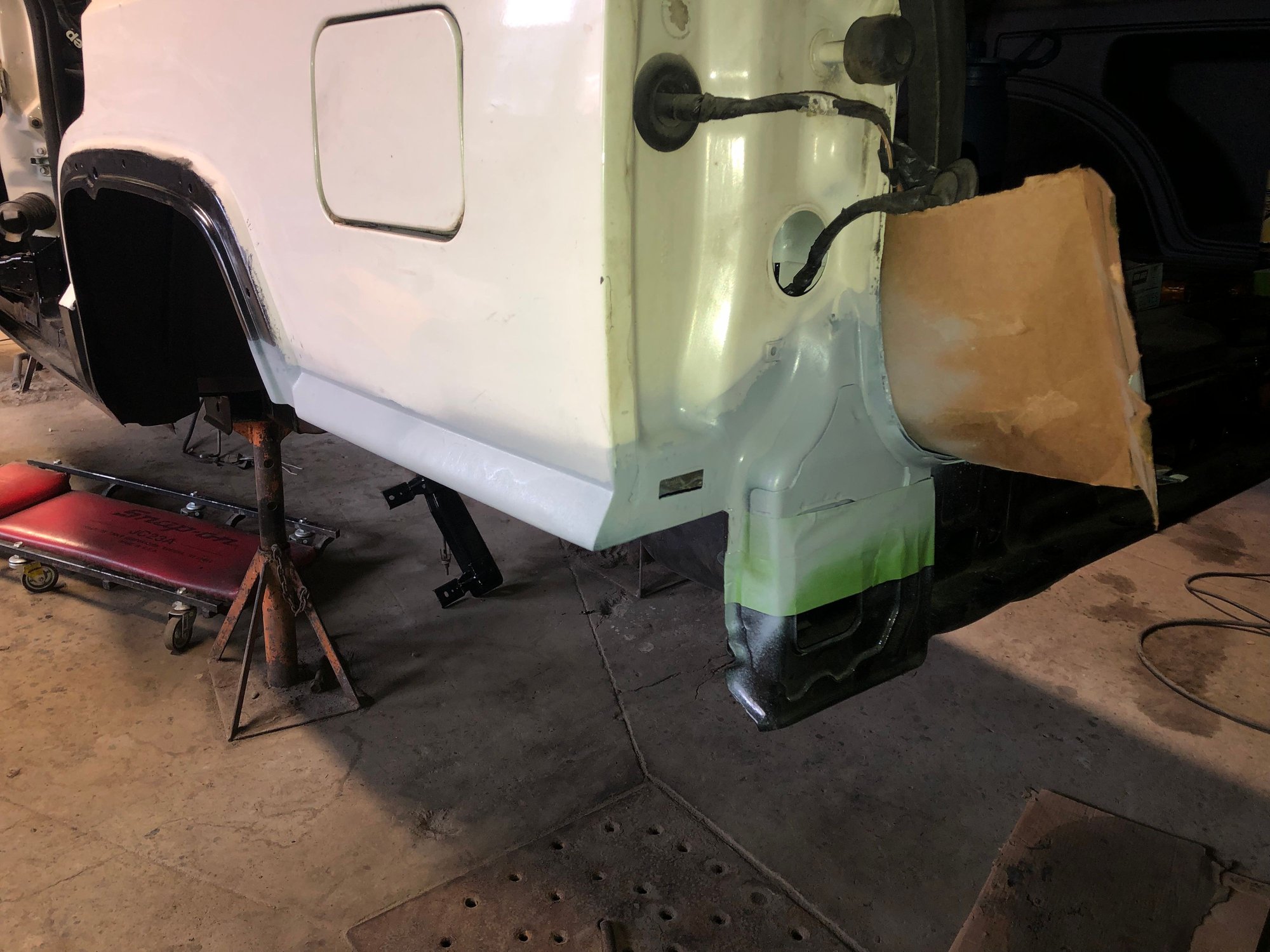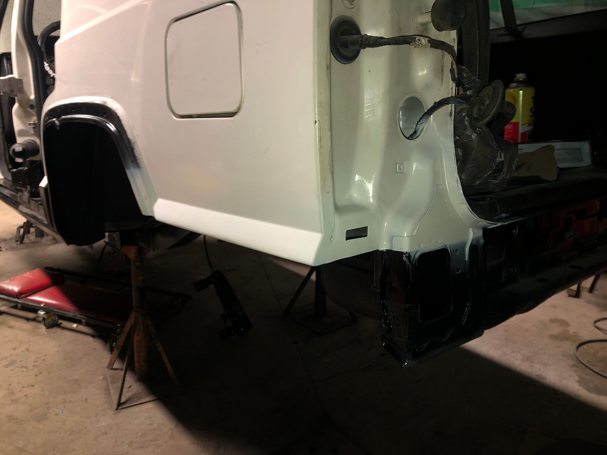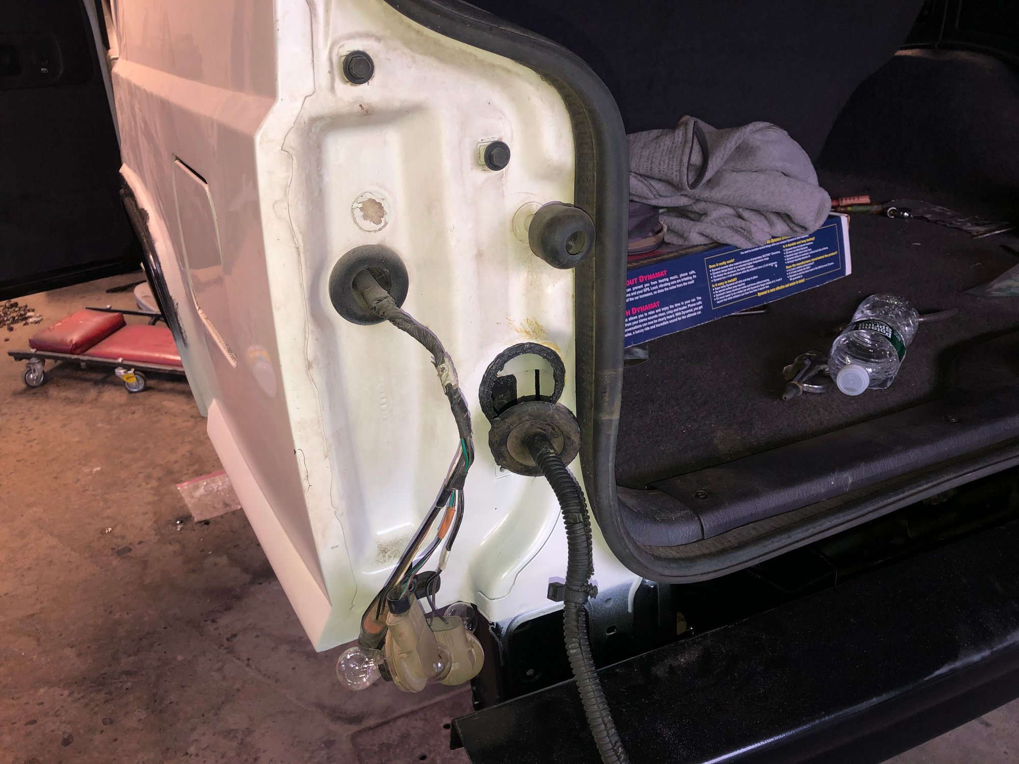 Back when I was cutting the quarter panels, I realized I needed to reroute the trailer hitch harness, as the original spot it came through on the body would be cut off.
