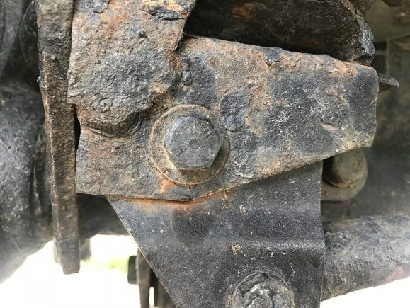 The replacement 7/16” bolt on my old XJ’s front axle. This Jeep had a drop bracket for the stock track bar, which was later removed to install an adjustable track bar.