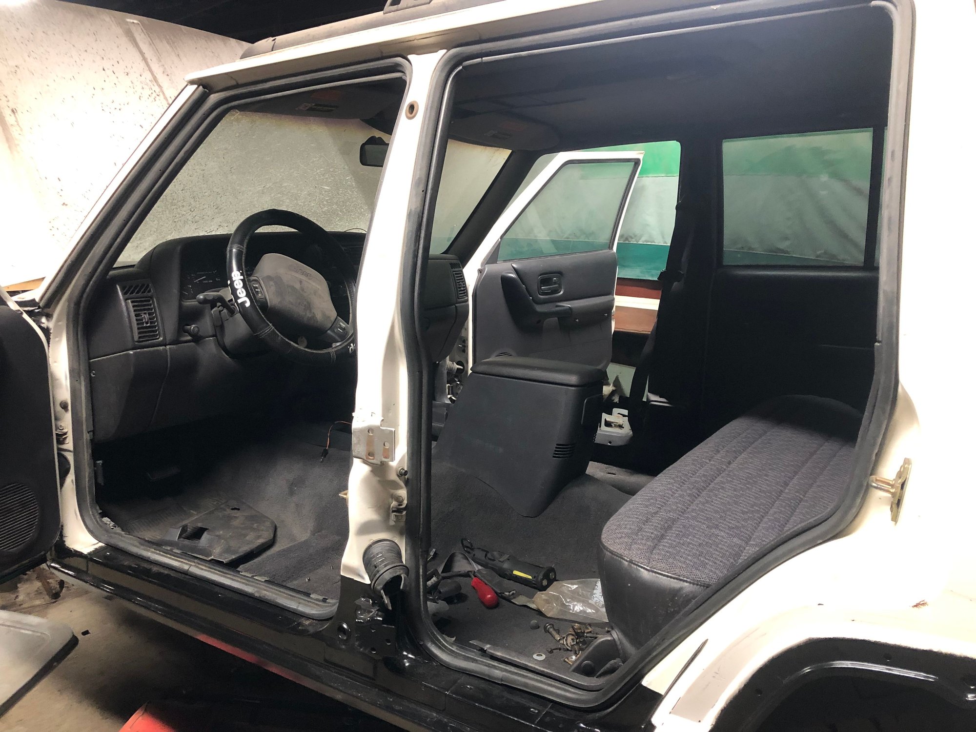 The rear driver door this Jeep came with had a large dent in it, so I swapped it with a nicer rear door from my 2000. The 2000 was sold with the dented door. The one I saved for this Jeep had been setting around for over a year, collecting dust.