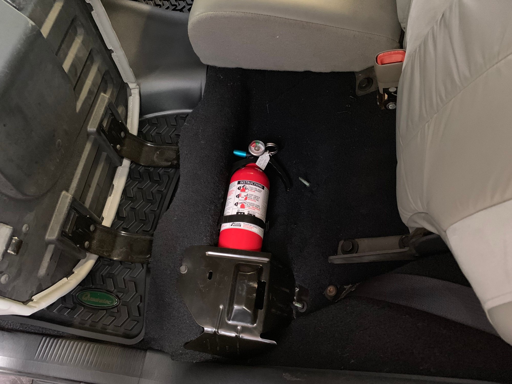 My brother fabricated a nice flat belly skid plate, and I was working on some smaller stuff such as mounting the fire extinguisher ( it's required to go on an overland adventure ), hooking up the transmission temperature gauge, and topping off all the fluids.