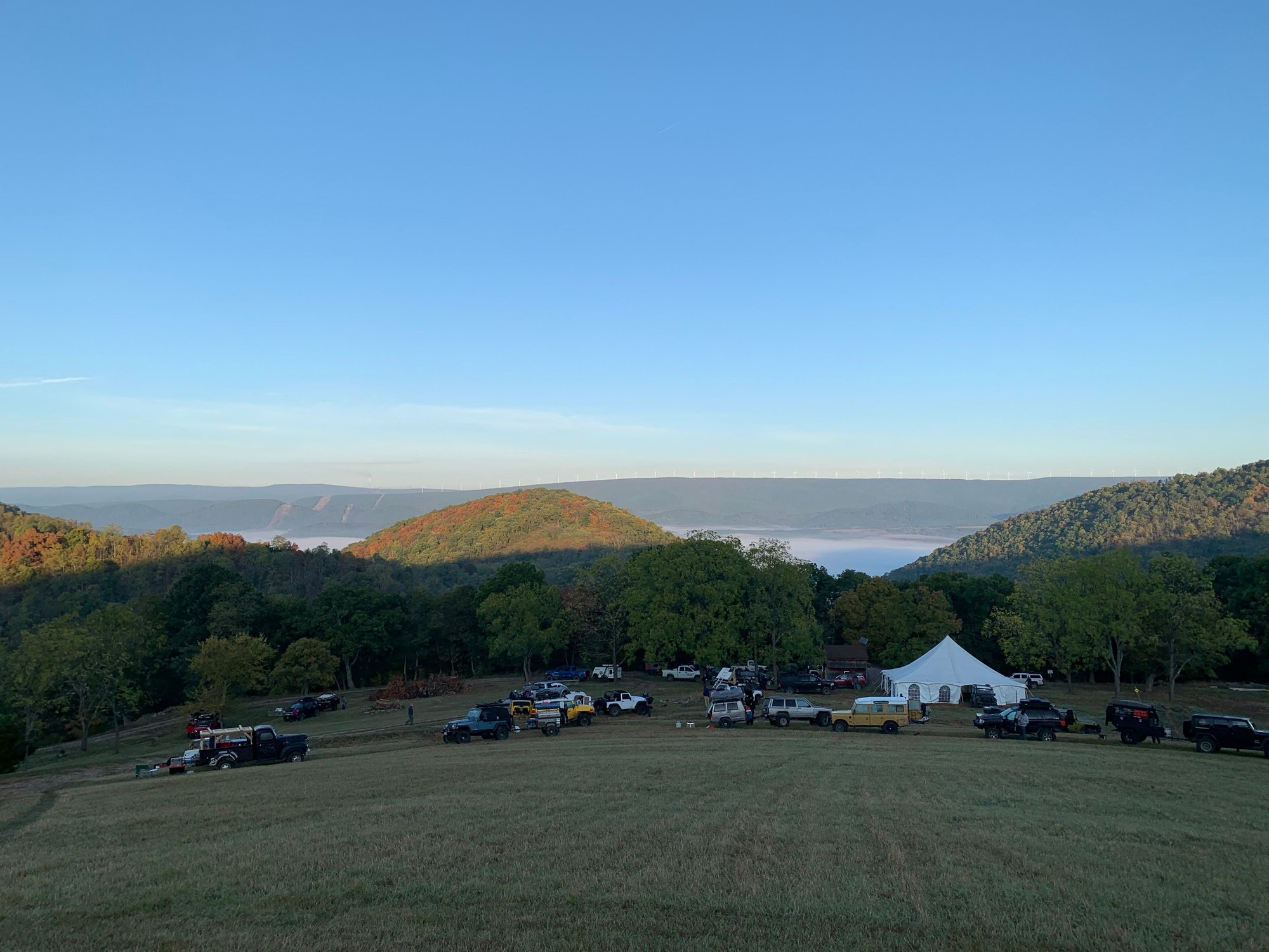 After lunch, we hit the road. We had about a 2-hour drive to our first camping spot in some small town in Pennsylvania. We arrived around 6 pm to the campground. Everybody started setting up all the tents, trailers, etc. Later that night we had a nice dinner, provided by the fourwheeler crew.