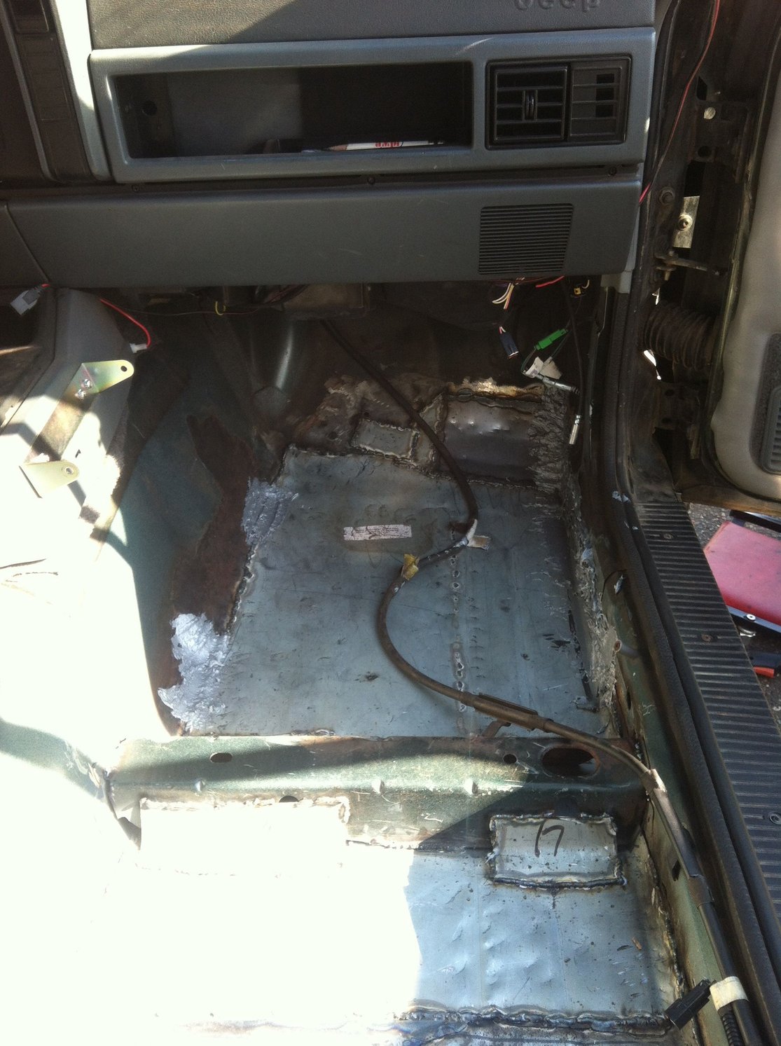 Spent pretty much the entire day today working on the floors again. Made some good progress too. Just need a couple more welds on the bottom side, sanding a little bit of the body filler I had to use, an bed lining. Then I can move to the rear wheel wells and the finally the driver side.