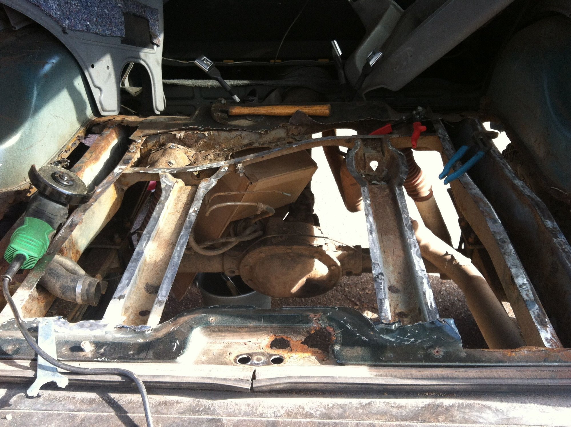 Got a start on the rear passenger side floor pans today. Wish I could've got started on it earlier but it's been really busy. Other than that I bought a spare and am just waiting on the wheel to come in so I can go get it mounted and balanced.