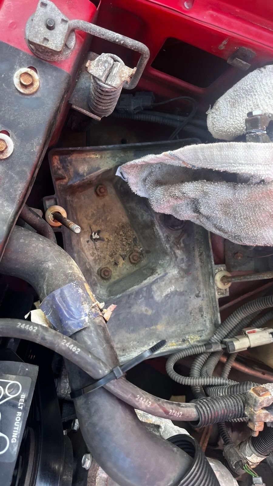 Getting the old one out was fairly easy as far as rust belt vehicles go. I took tension off the belt... then removed the battery and battery tray. Unplugged all the connections and got the bolts out and finished it off with a rubber hammer and pry bar.