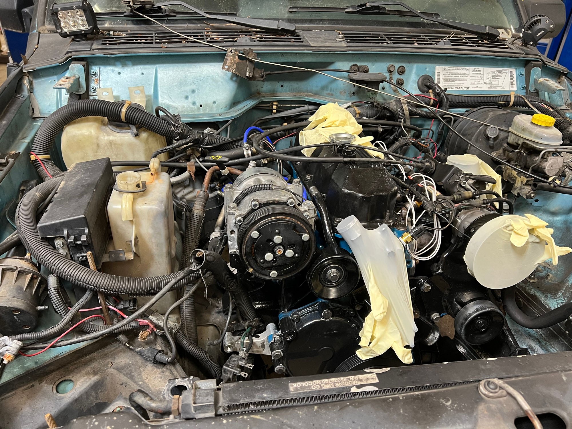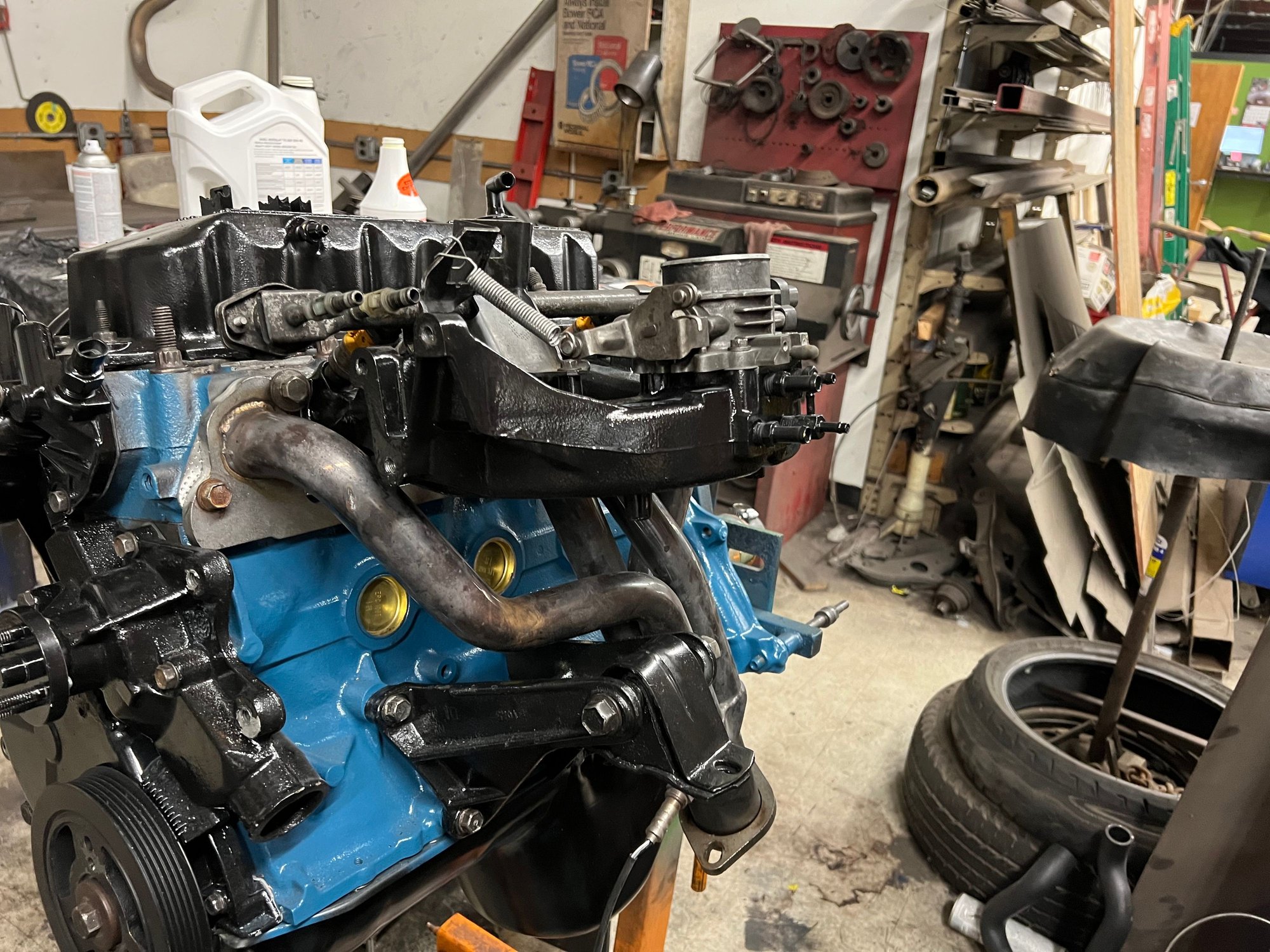 As far as the break in goes, it went smoothly aside from the oil leak. It’s not a major leak, just a slight drip every now and again. It maintained really good oil pressure, and the temps seemed to equalize. My boss said that since everything is brand new, it generates a bunch of extra heat since everything’s gotta find its “home”. Once the break in was done, I changed the oil and filter with 15w40 Shell Rotella, as well as half a quart of Lucas oil stabilizer, per the break in procedure for the cam. Once I get my driveshaft on, I’ll take it down the road and back once or twice and change the oil and filter again, and then take it out longer and change it all once more, and then change it at about 500 miles after that. Maybe that’s too much? Idk. No one knows really.