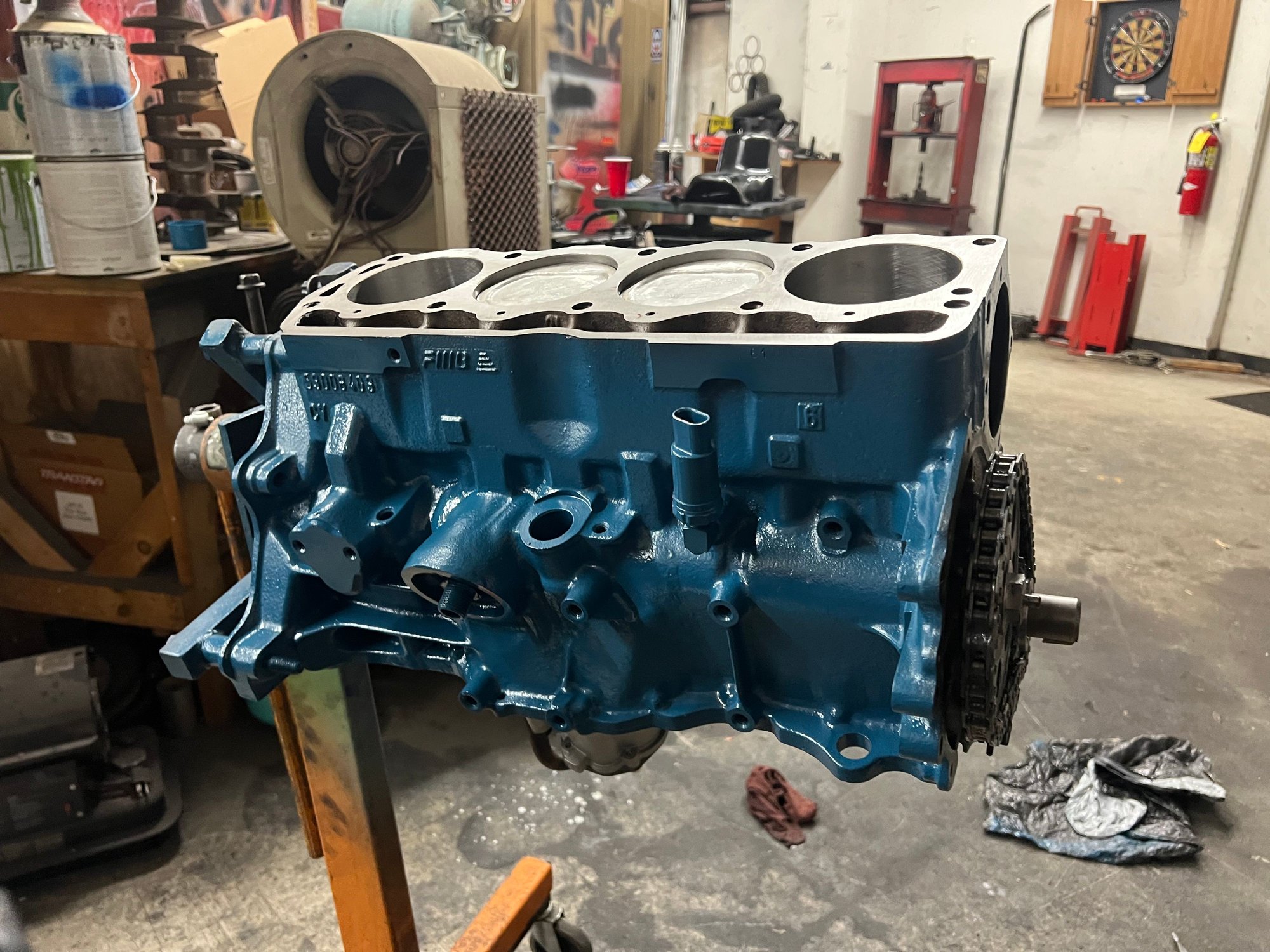 I still do have to measure my pushrod length, but I’m thinking that my stock pushrods might suffice. I’m not 100% in my reasoning, but I have a feeling using my stock pushrods will work out okay. It’s finally coming together as a functioning rotating assembly. My boss said I’m about to have the most expensive 4 banger on the road. Also don’t mind the painted sealing surfaces. I will clean that up and I’m not dumb enough to try and let that seal with paint.