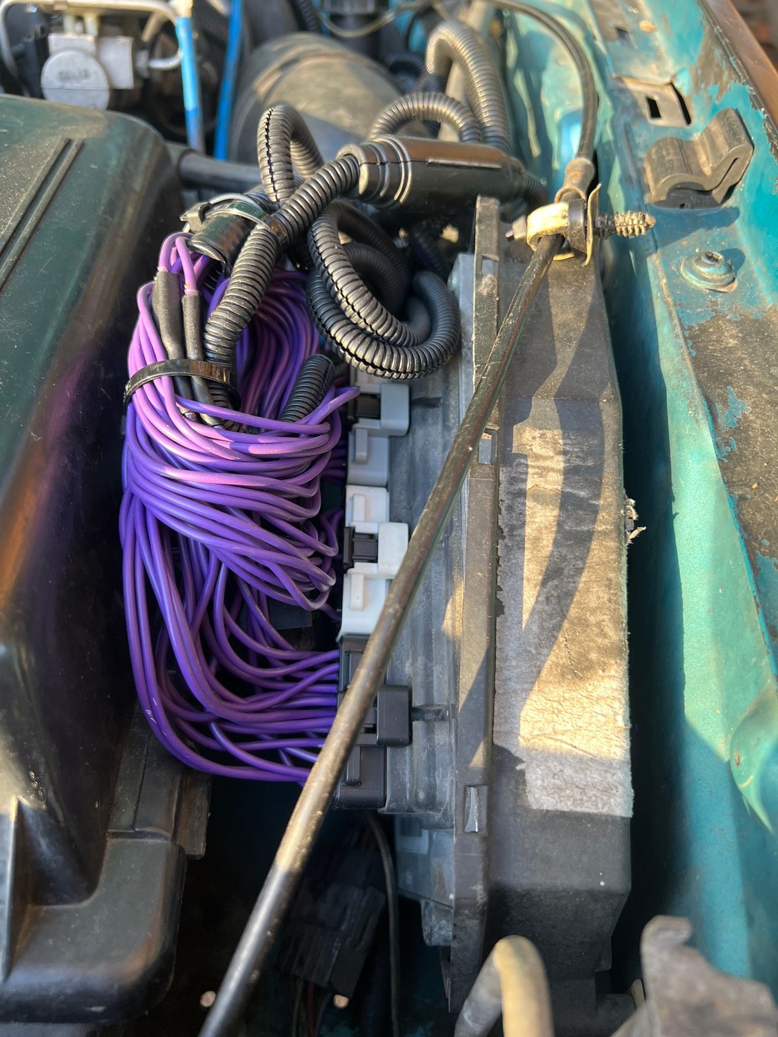 In its essence, it’s a harness that adapts the old OBD1 connector to a newer 3 plug setup for the OBD2 connectors, and it requires a 96 PCM if you want a functional tach, or a 97-99 PCM if you don’t want a functional tach. Thankfully, he found a 96 PCM from a 2.5 MT. I got it all connected and secured, and she fired right up!