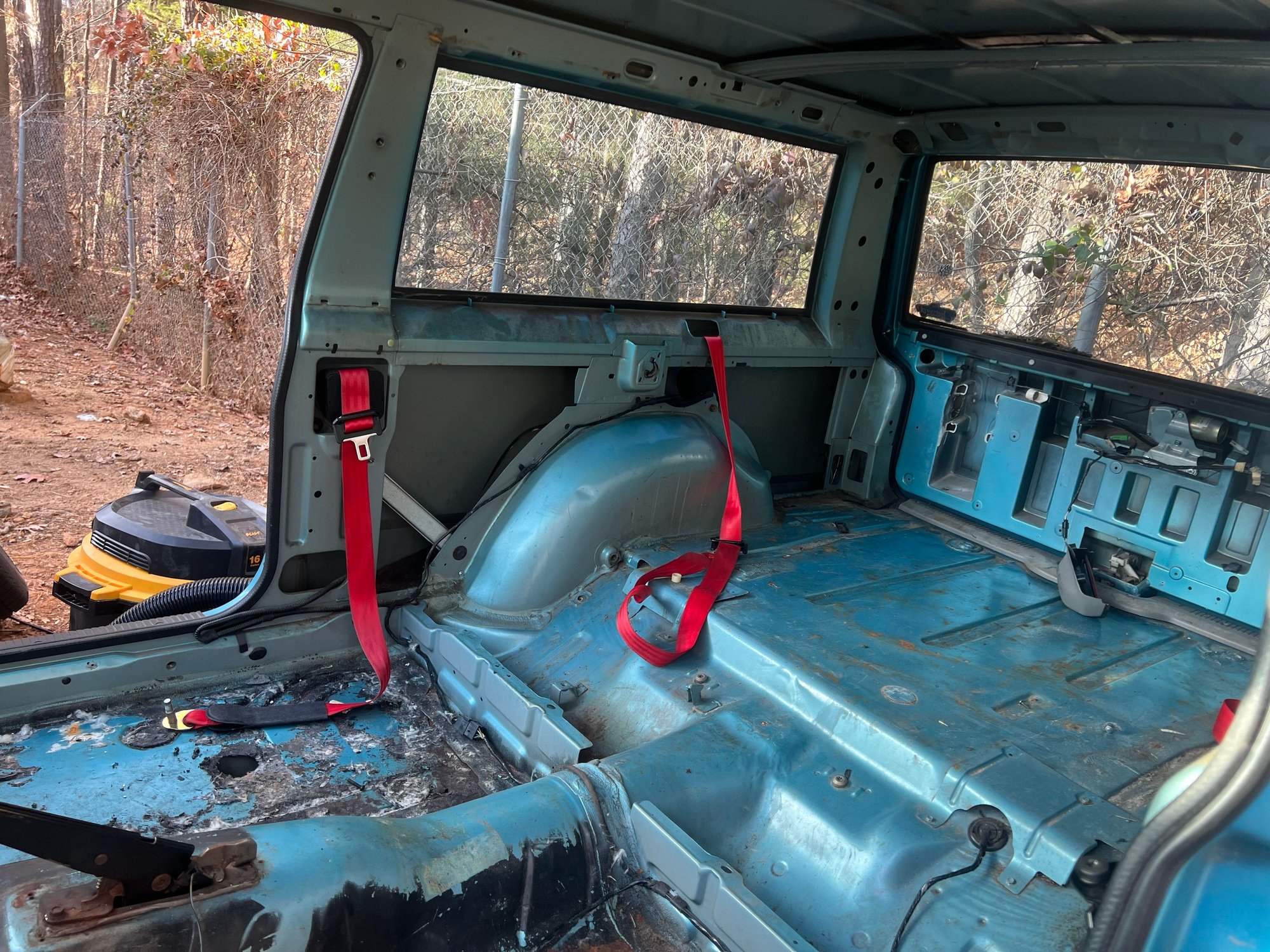 I took a better look at my floor pan on the drivers side and, well, I’ll be better off replacing the entire floor pan. If you wiz wheel the paint off, there’s rust all on my floor pan. I’ll just put new pans in and then put the brackets for the 94 and earlier seats and not have to worry about much
