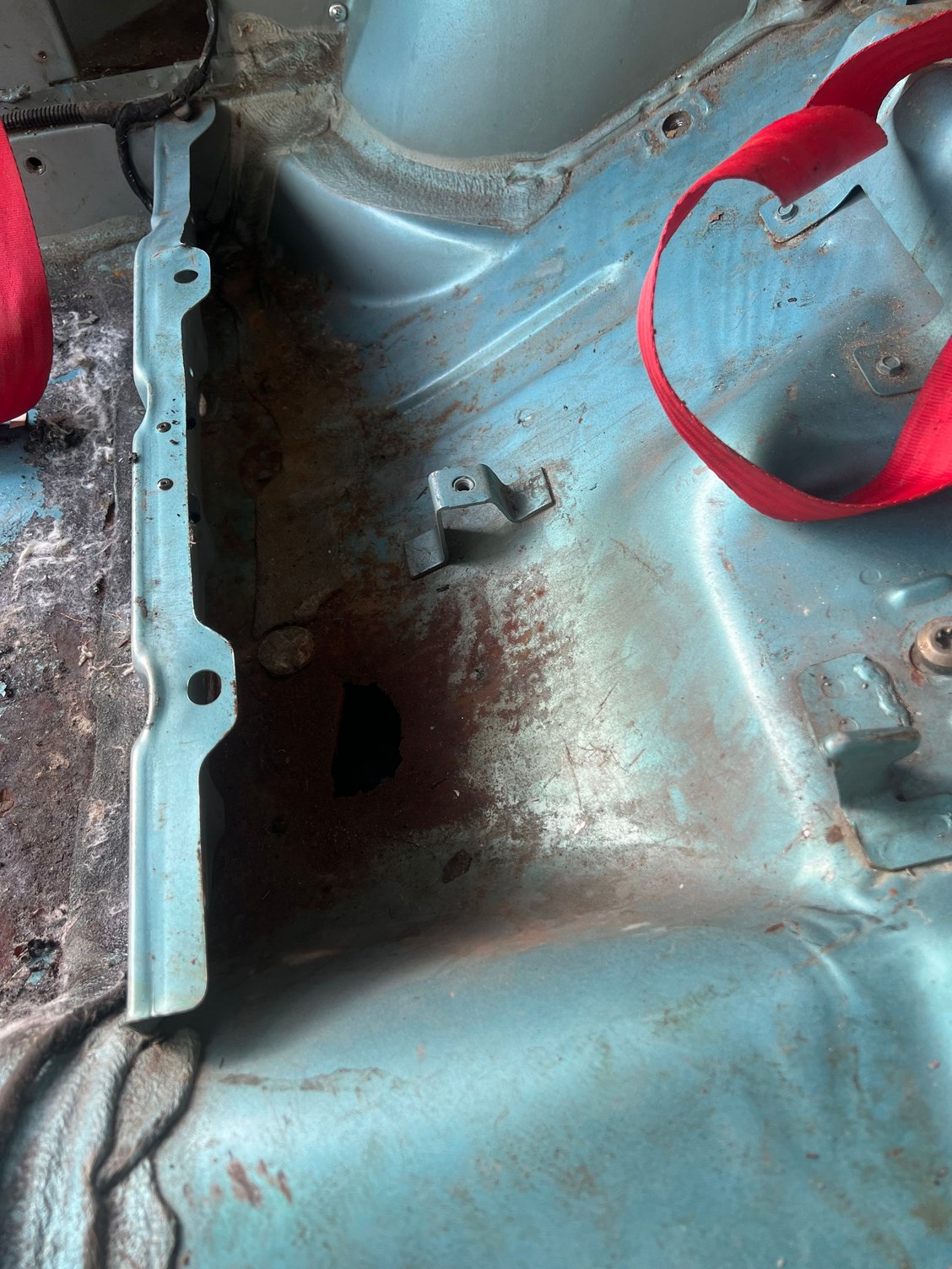 Everything is disassembled The massive hole under the rear seat The passenger side floor pan The drivers side floor pan
