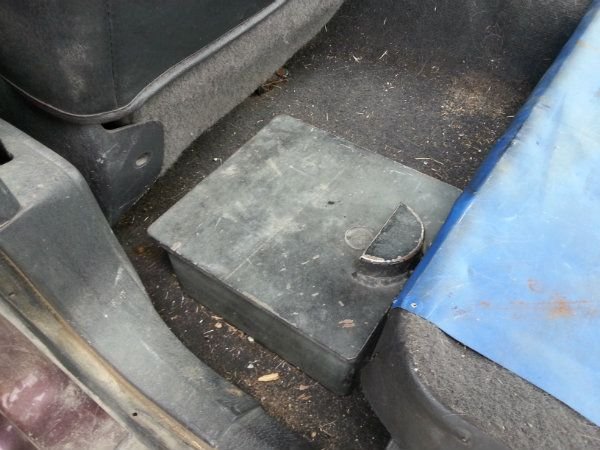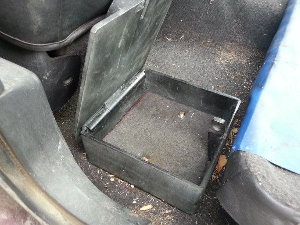 The "safe" behind the drivers seat. Need to get a lock for it sometime.