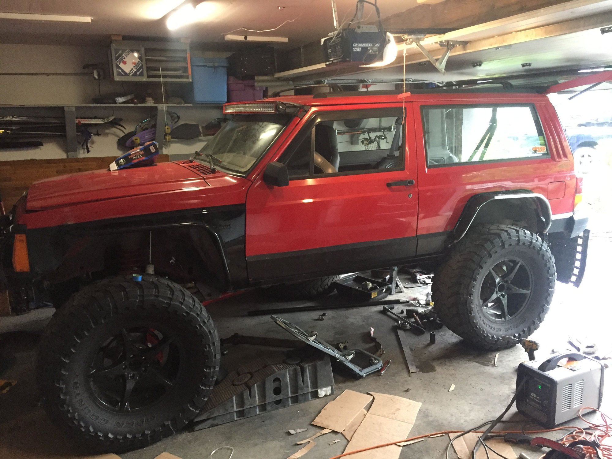 Have been really busy so haven't had much time to update, but here's how she sits currently. Got the front end pretty much dialed in other than needing a new drivers side axle shaft (sheared at the splines). Just need to finish up the rear end and I'll be truly ready to see what she can do. Taken it on a few trips around the block with 3.55s and it wasn't overly terrible, but it should be a lot better with 5.13s.