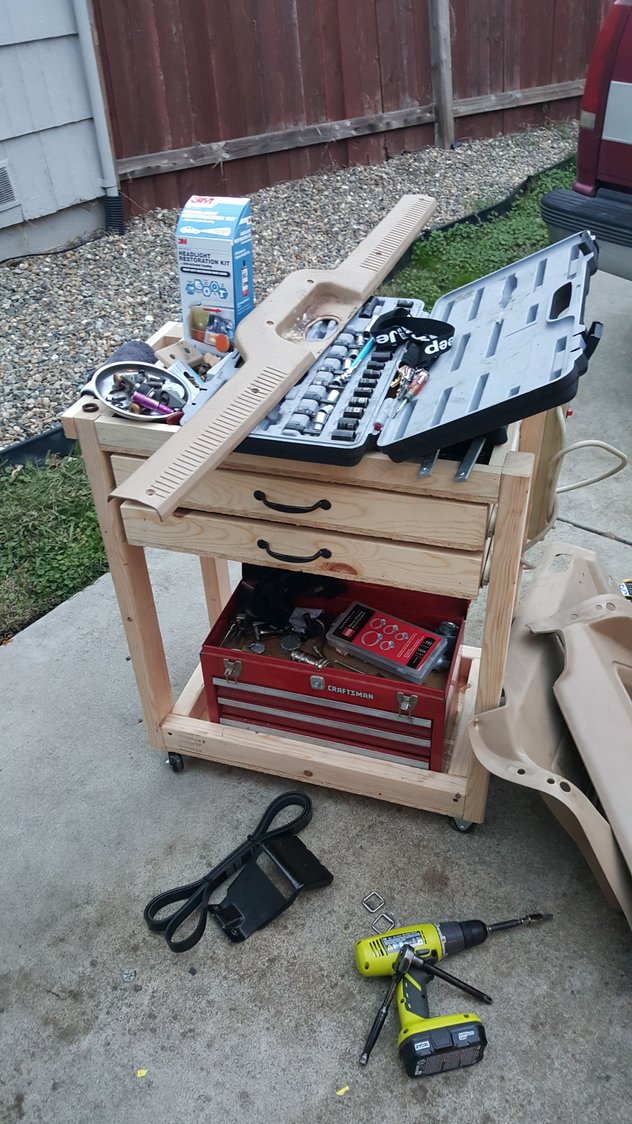 So after I got off work I decided "I'm tired of not being able to see behind me when I backup" so I got some new reverse bulbs and installed them. Then I noticed that the battery acid that had leaked a few weeks ago in my cargo area is resurfacing. So I figured I would just tear out the back carpet. Big mess.