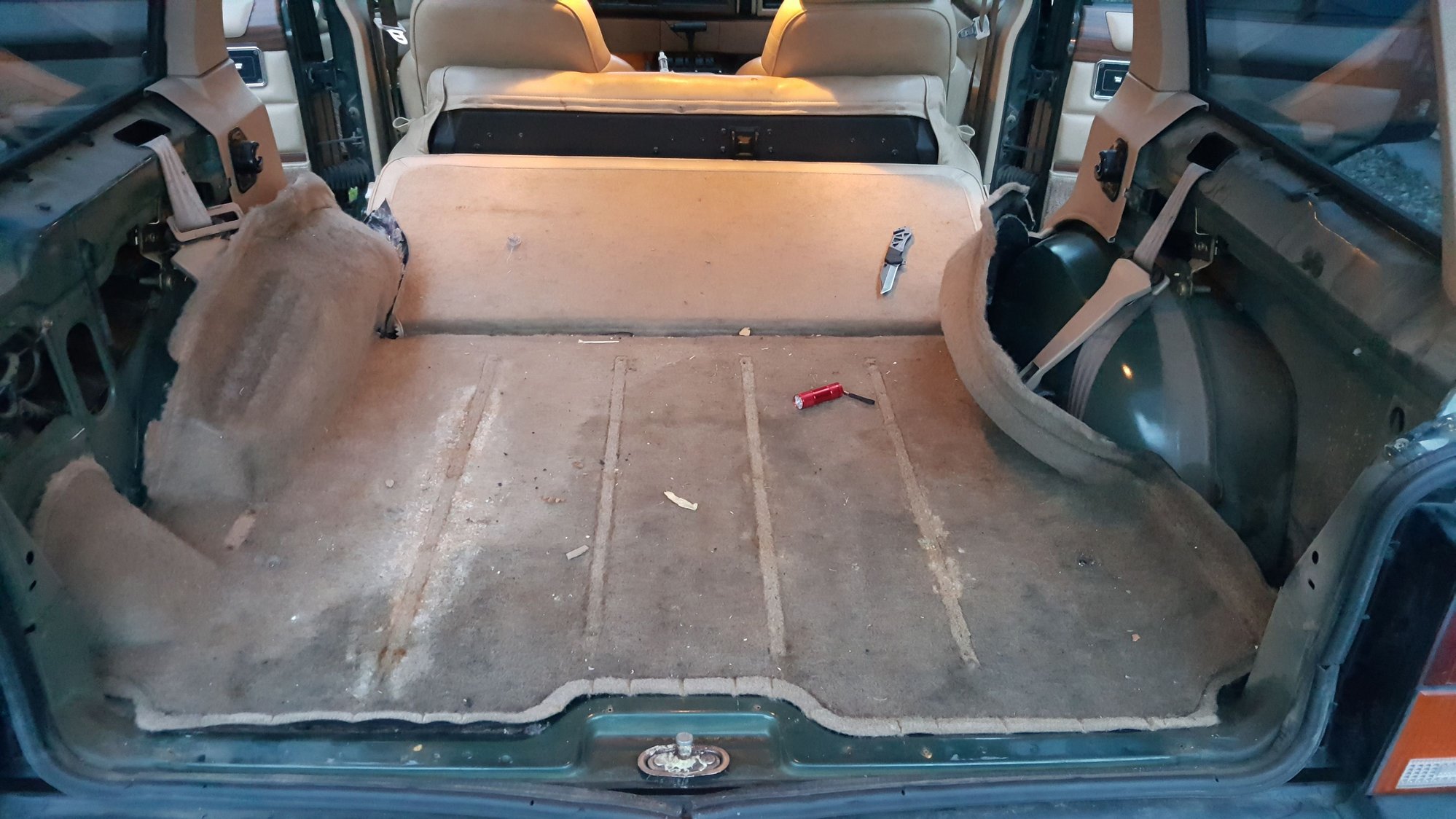 Looks good so far, I removed the back seat and seat belts and finished painting the section underneath. Then I cleaned and put all my trim back in. I'm gonna fill in where the backseat was and build a level floor.