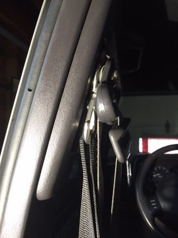 The Safari Straps Fire Extinguisher Mounts came in today. Got them mounted up in a few minutes using a simple carabiner (rated for 500lbs of course!) on the OEM upper seat belt bolt, and then strapped to the seat down below: