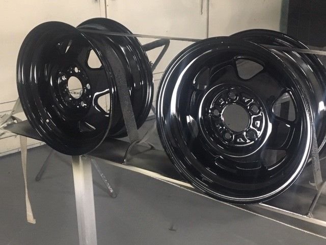 Got my wheels all sand blasted and painted. I will say the rusty rims were pretty easy to blast, while the one rim that wasn't rusty other than surface rust was a PITA. Took me a full day to get them done and here are some before and after pics.