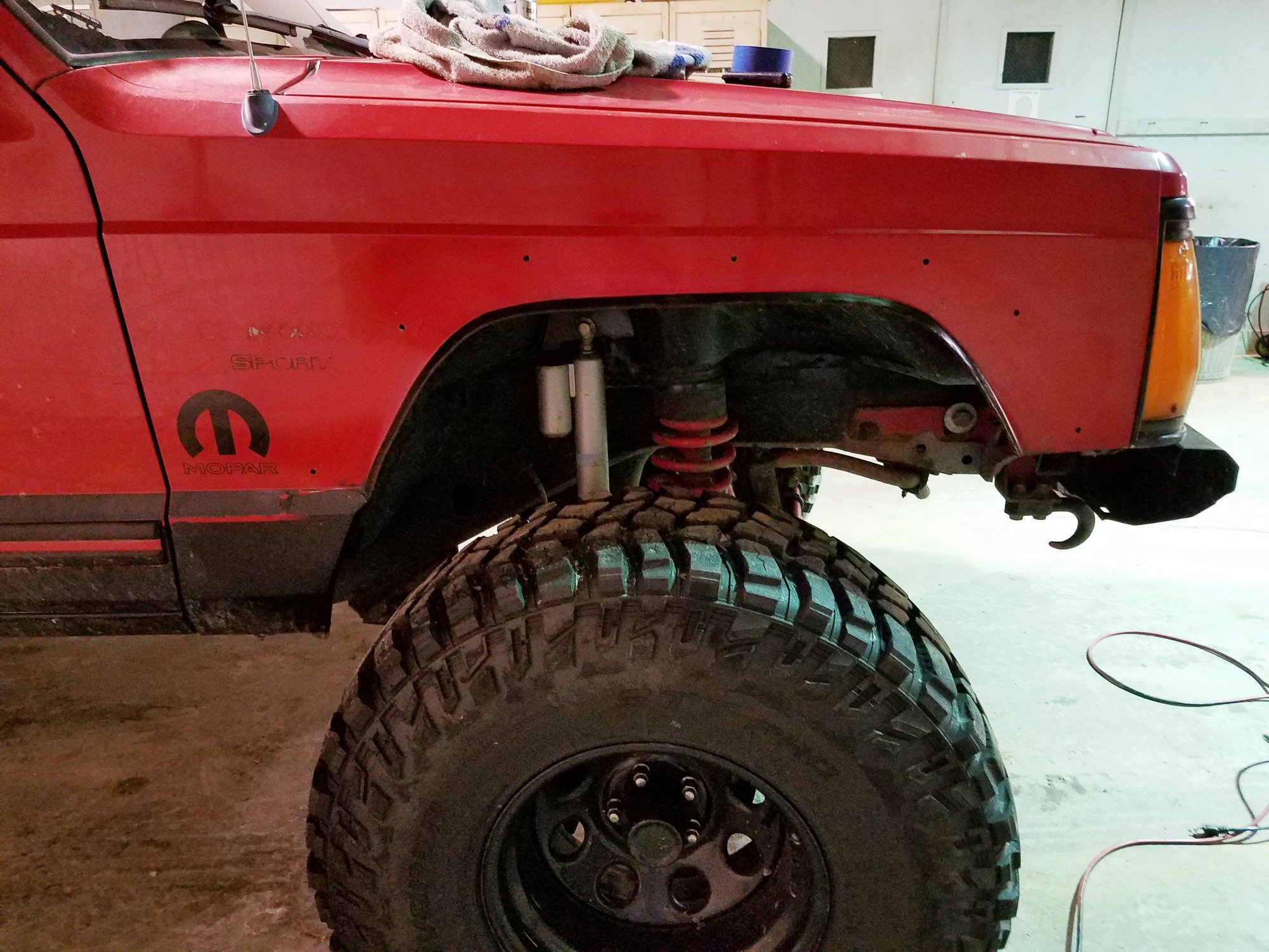 So I took care of a much needed change to the jeep. Ever since changing to 35s, I've had issues rubbing the fenders at full lock. So much so that it was starting to crack the sheet metal apart. So I fixed it by removing the offending metal .