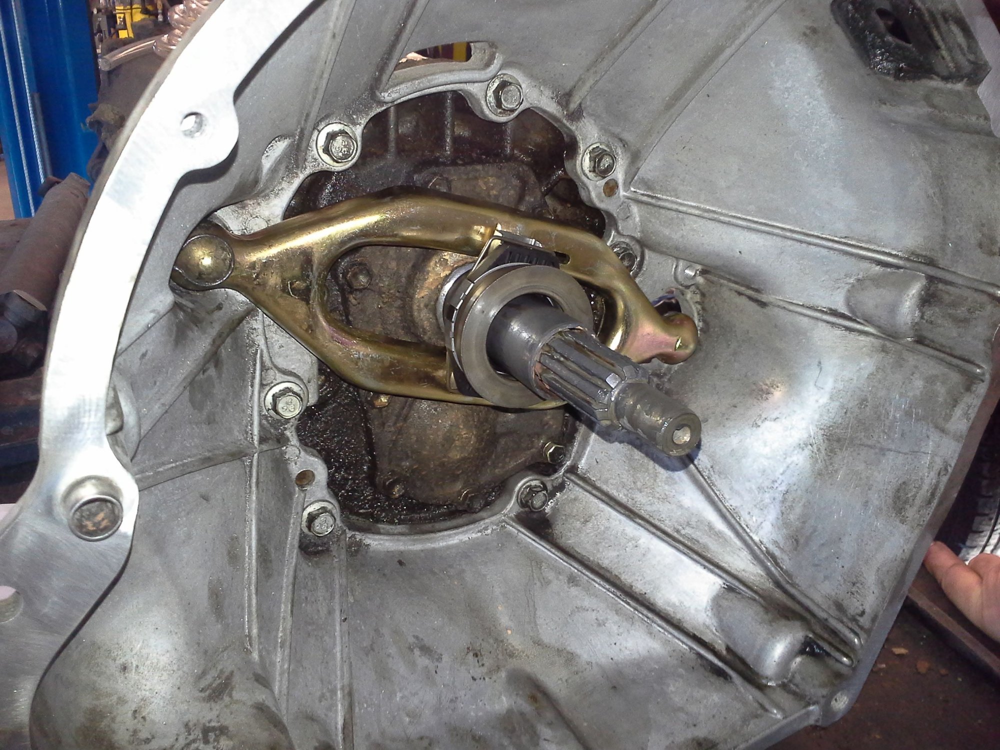 Took the bellhousing off and cleaned it up. Replaced the pivot ball.