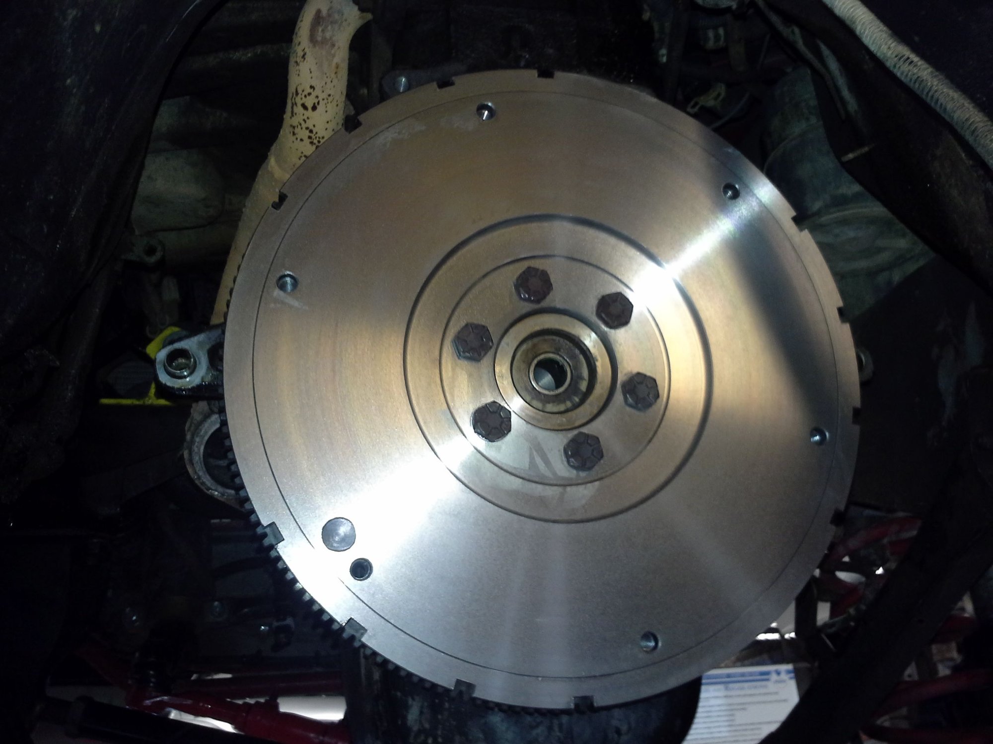 New flywheel in place - Bolts torqued with blue locktite.
