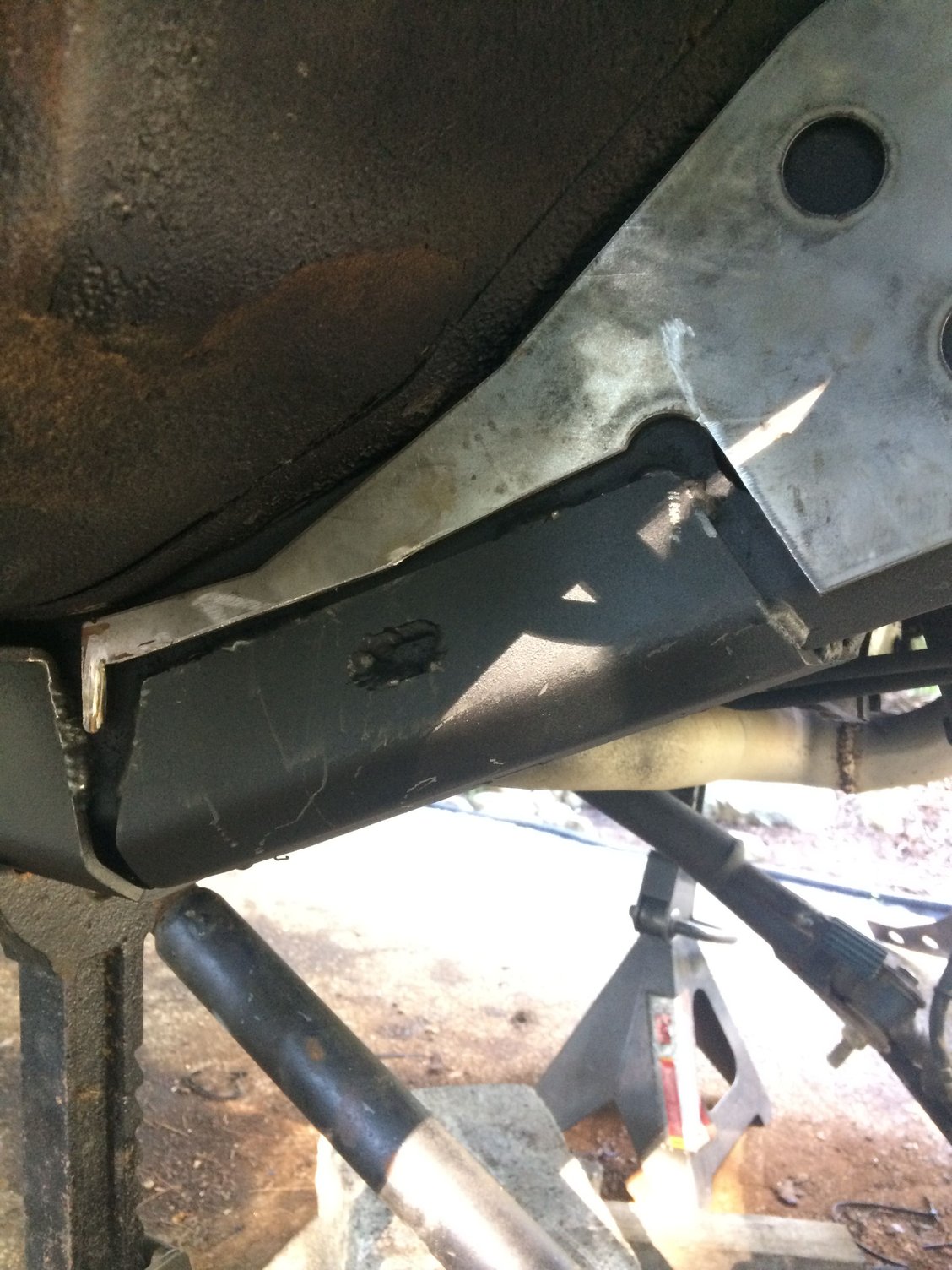 Last week I welded up the other mid stiffiner after work one day. My welding skills are improving vastly! I figured out that I need to have a very clear field of vision of the puddle so I can really see what is going on as well as being comfortable and able to move. I had a hard time on the other side because the height I was working at. Its too high to lay my head on the ground but too low to sit upright. On this side I propped myself on that blue watering can and had much better control of the puddle.
